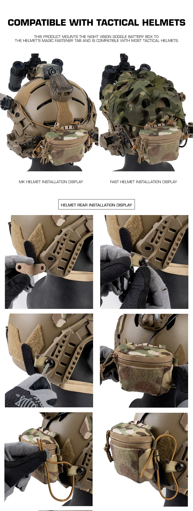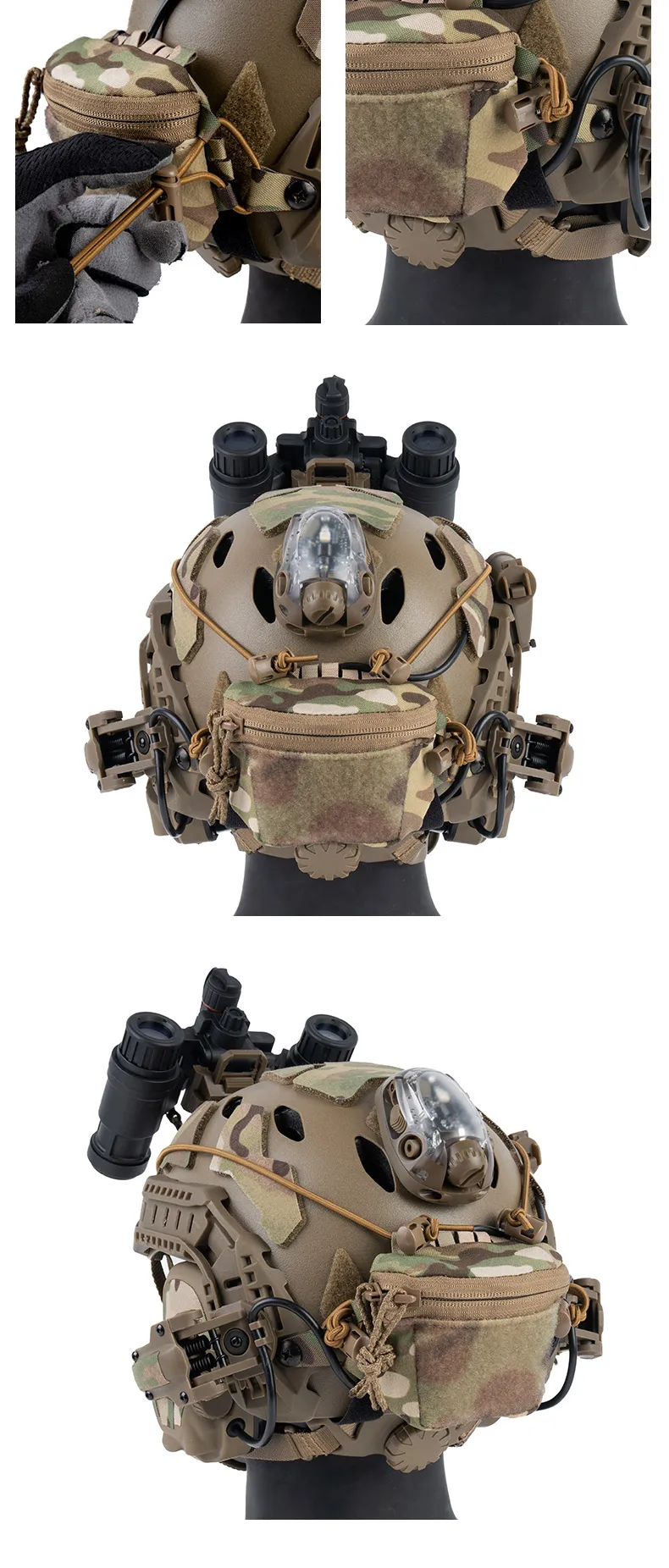 Descripción del productoBolsa de almacenamiento de casco con doble cremallera de nailon 1000D para cascos FAST MK almacena auriculares batería entrenamiento de caza uso de rescate al aire libre