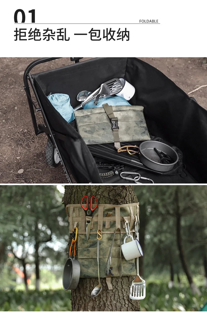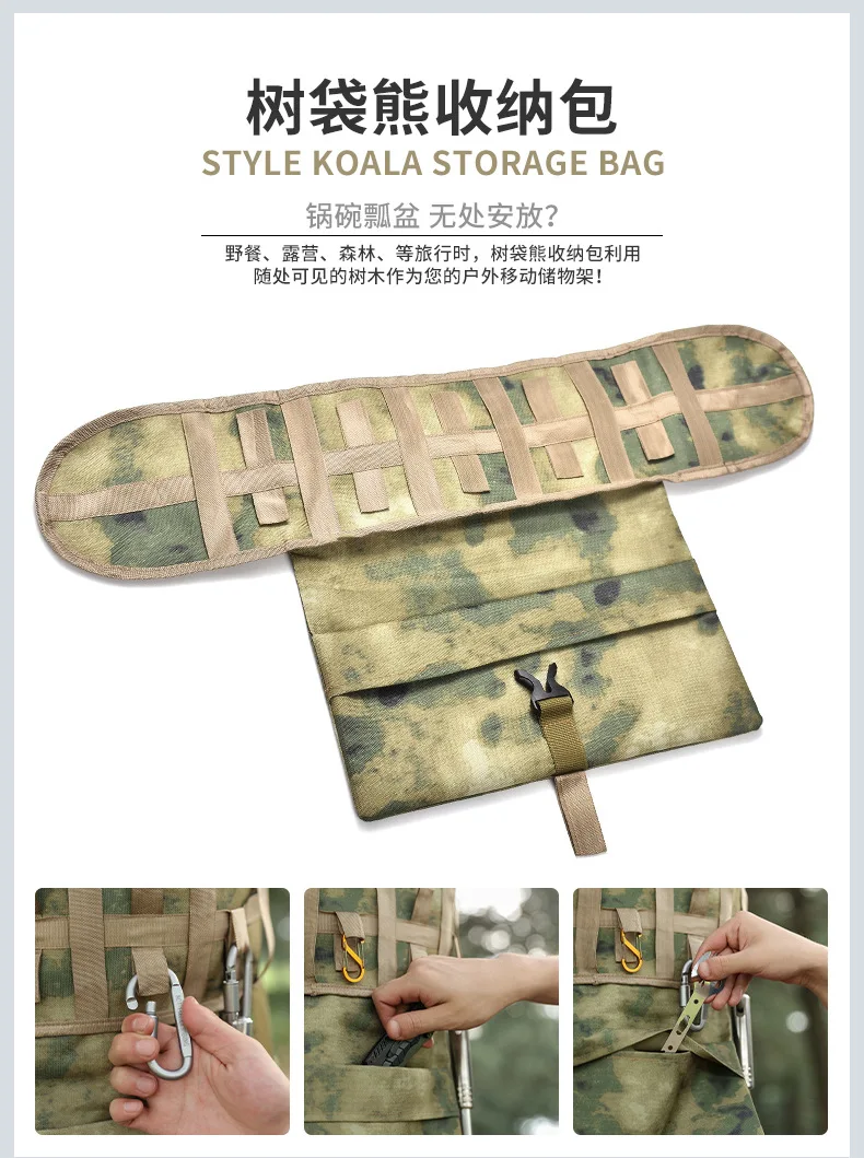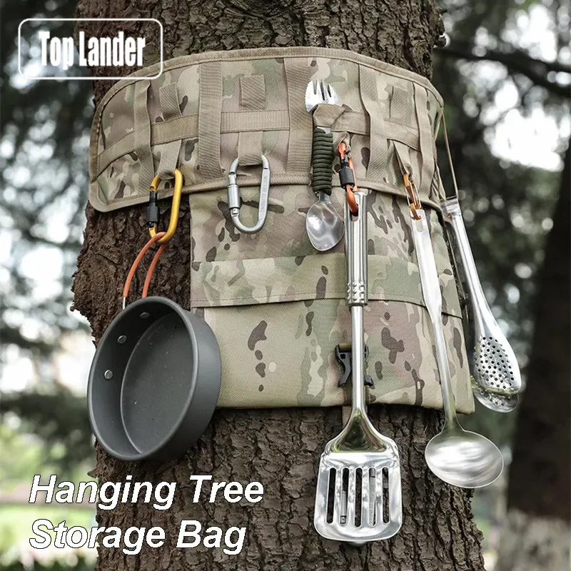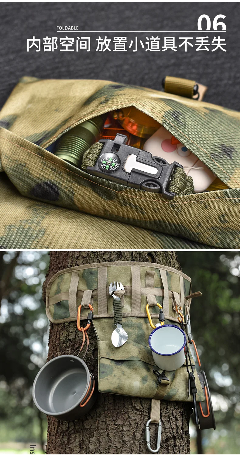 Bolsa de almacenamiento colgante de árbol multifuncional, plegable para acampar al aire libre, vajilla portátil de supervivencia de campo Bushcraft, herramientas de engranaje de bolsillo
