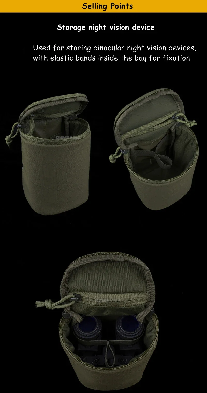 ●Se utiliza para guardar dispositivos binoculares de visión nocturna, con bandas elásticas dentro de la bolsa para su fijación.