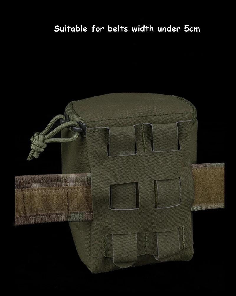 ●Sistema MOLLE.Adecuado para cinturones de menos de 5 cm de ancho.