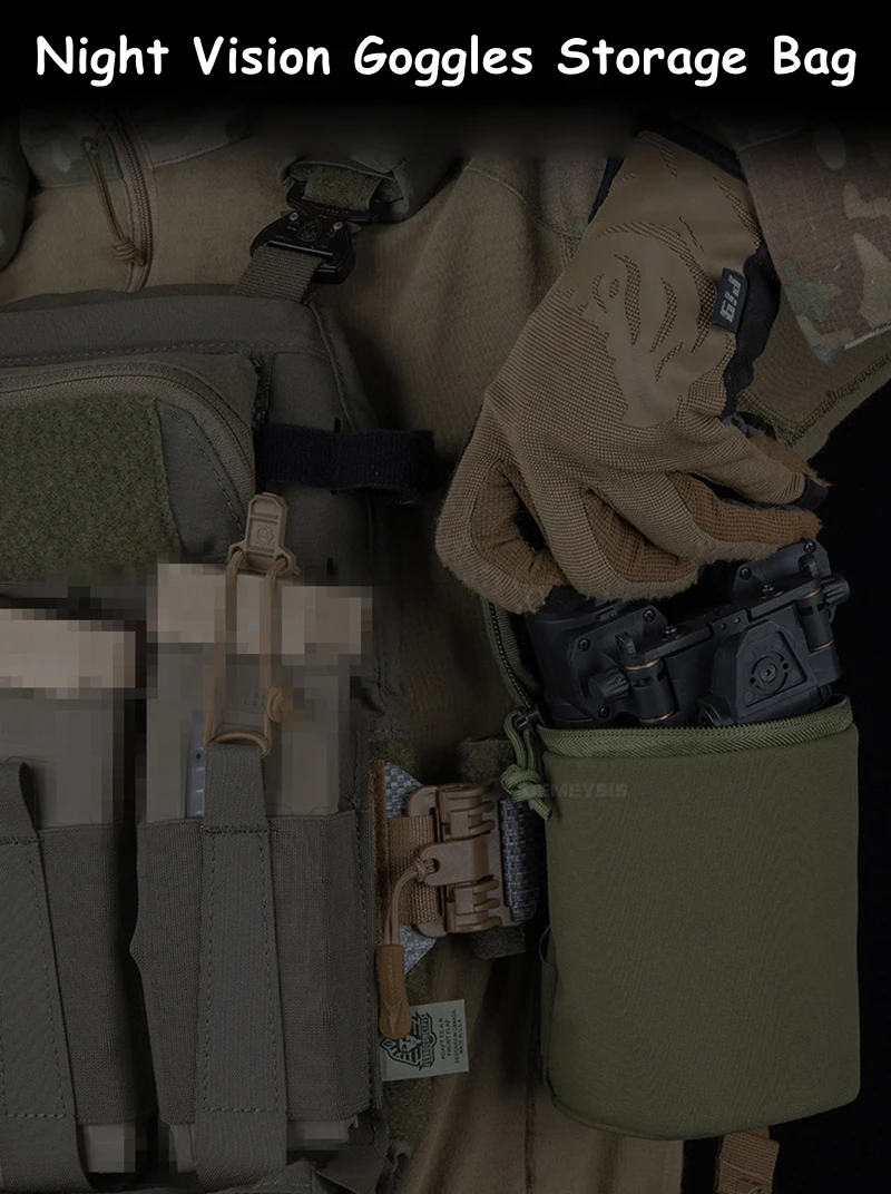 ●Se utiliza para guardar dispositivos binoculares de visión nocturna, con bandas elásticas dentro de la bolsa para su fijación.