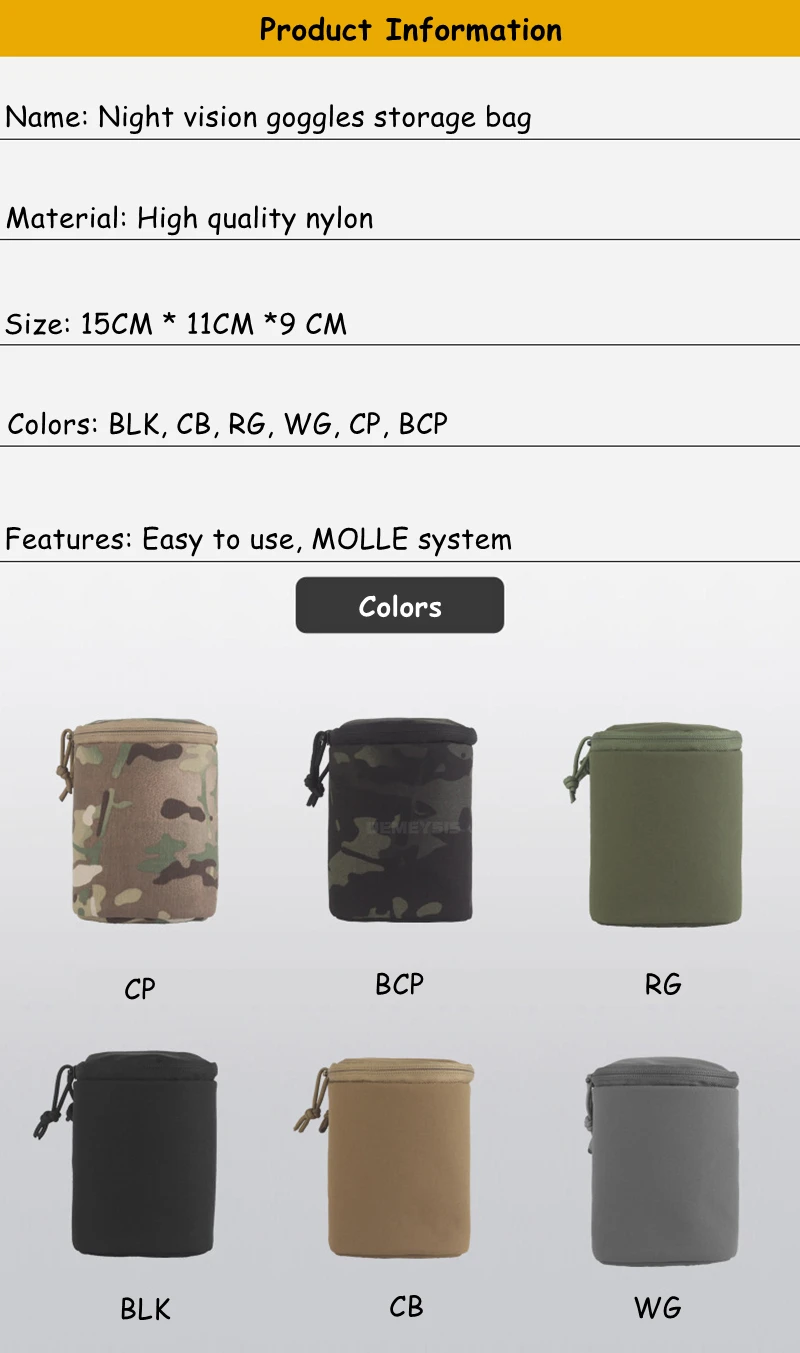 ●Nombre: Bolsa de almacenamiento para gafas de visión nocturna
