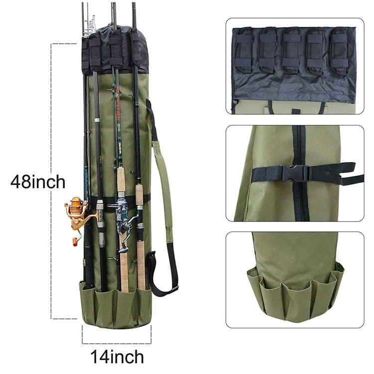 Nueva llegada multifunción portátil aparejos herramientas bolsa de almacenamiento de pesca bolsas de pesca grandes de nailon bolsa de caña de pescar bolsa de pescaCaracterísticas:*Protege mejor tu equipo de pesca.