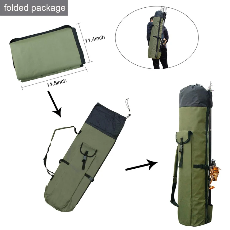 Especificaciones:Nombre del producto: Bolsa de pescaMaterial: Oxford 600D + 210DColor: Negro, ODTamaño: 123*34cmPeso: 680GPaquete: Bolsa de PP
