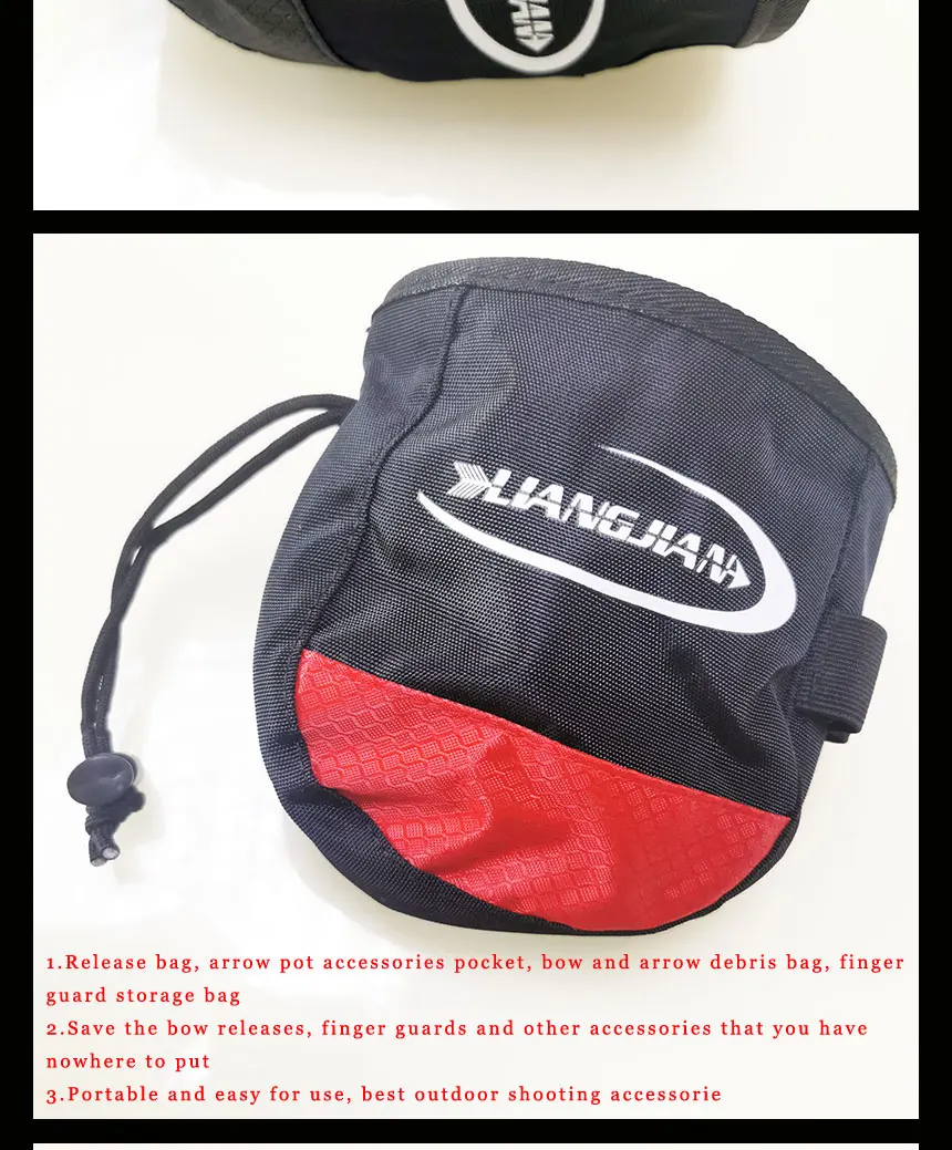 1. Bolsa de liberación, bolsillo de accesorios de olla de flecha, bolsa de desechos de arco y flecha, dedo