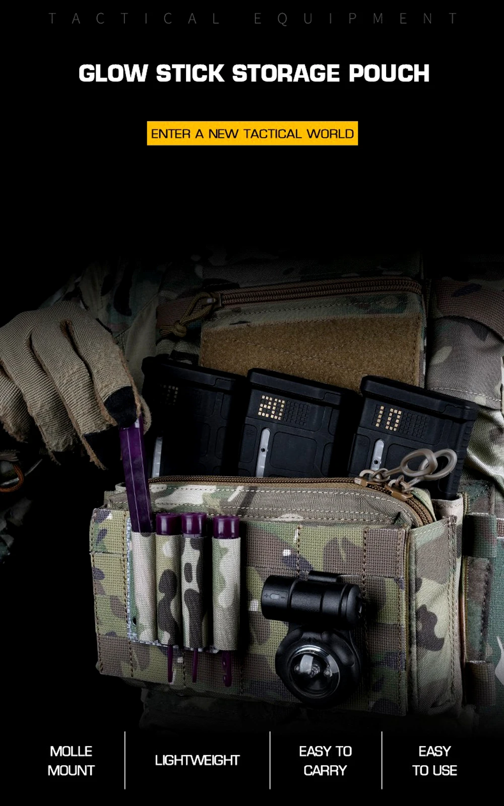 Bolsa de almacenamiento Molle Glow Stick, soporte de 4 orificios para batería de carcasa de escopeta Chem Light, accesorio portador de placa táctica para chaleco de caza