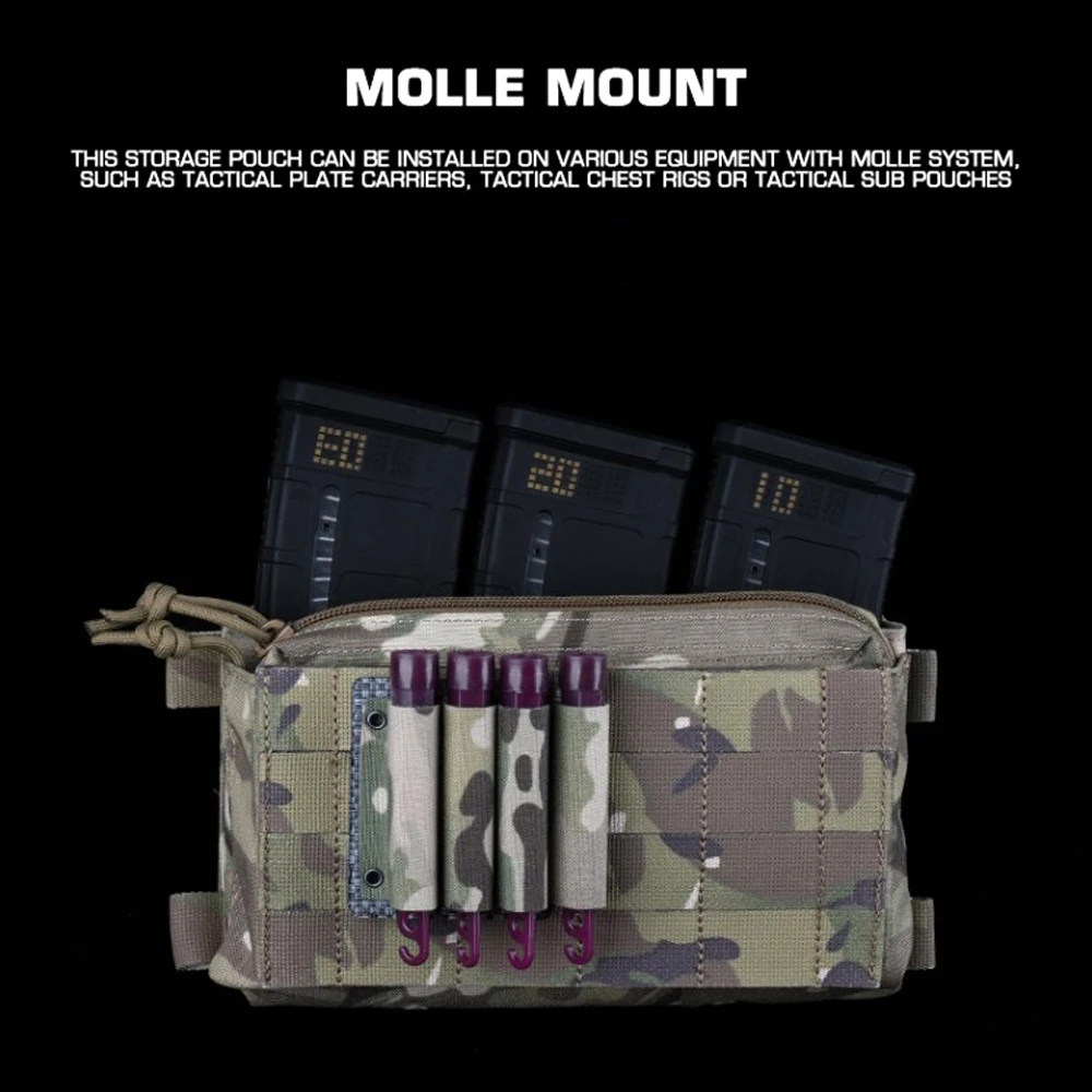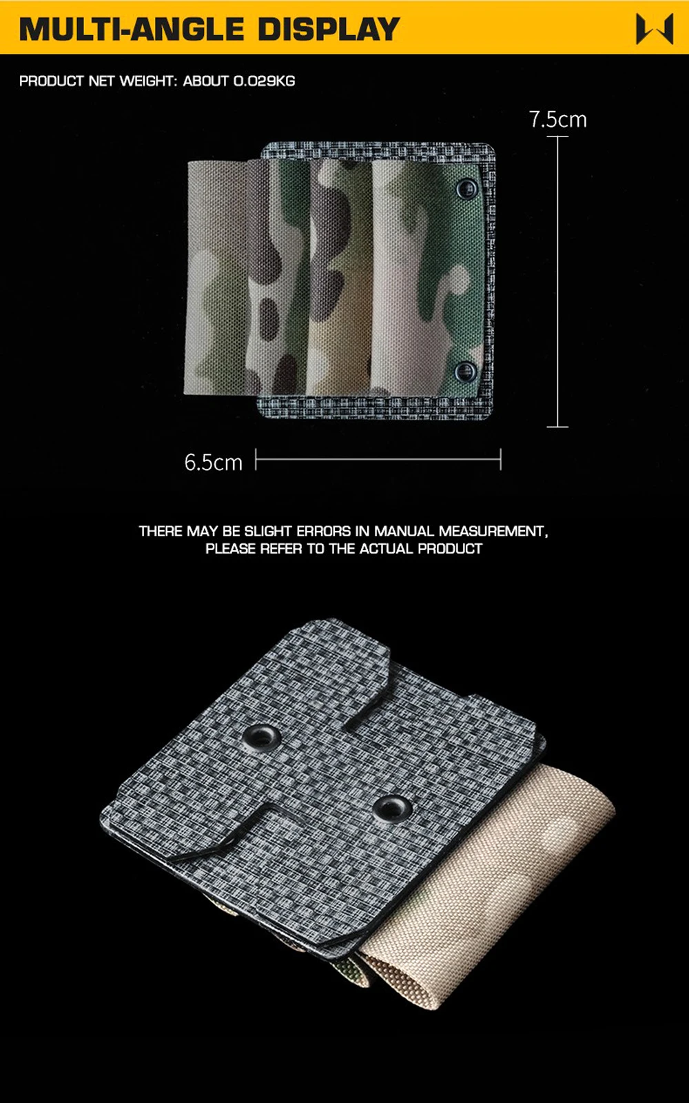 Nombre del producto: bolsa de almacenamiento para barra luminosa Número de artículo.:VE-ACC-16 Tamaño del producto: 14,5*9,5*1 cm Peso neto del producto: 0,029 KG Peso bruto del producto: 0,033 kg Color del producto: MC/MCBK/marrón coyote/verde Ranger/gris lobo/negro mate Material principal: tela Cordura. Escena aplicable: caza, deportes al aire libre y otros accesorios tácticos de atletismo Airsoft CS, etc.