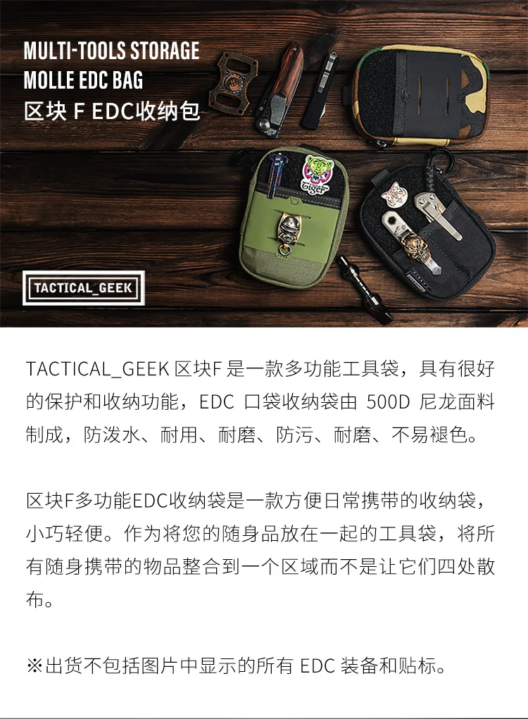 Una bolsa de herramientas multifuncional con buena protección y funciones de almacenamiento, la bolsa de almacenamiento EDC pocket está hecha de tela de nailon 500D, que es impermeable, duradera, resistente al desgaste, resistente A las manchas, resistente al desgaste y no se decolora fácilmente.La bolsa de almacenamiento EDC multifuncional es una práctica bolsa de almacenamiento de transporte diario, pequeña y ligera.Como una bolsa de herramientas para mantener sus pertenencias juntas, consolide todas sus pertenencias en un área en lugar de tener dispersas alrededor.