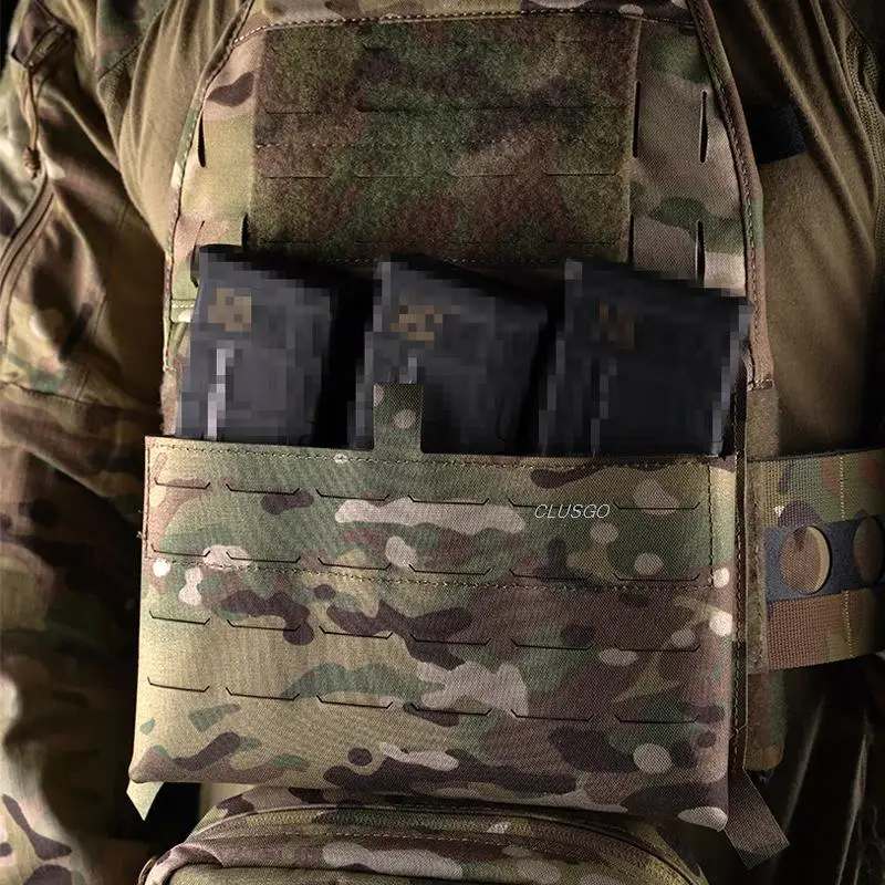 -Para colocar varias bolsas funcionales integradas, con sistema MOLLE cortado con láser en la parte delantera