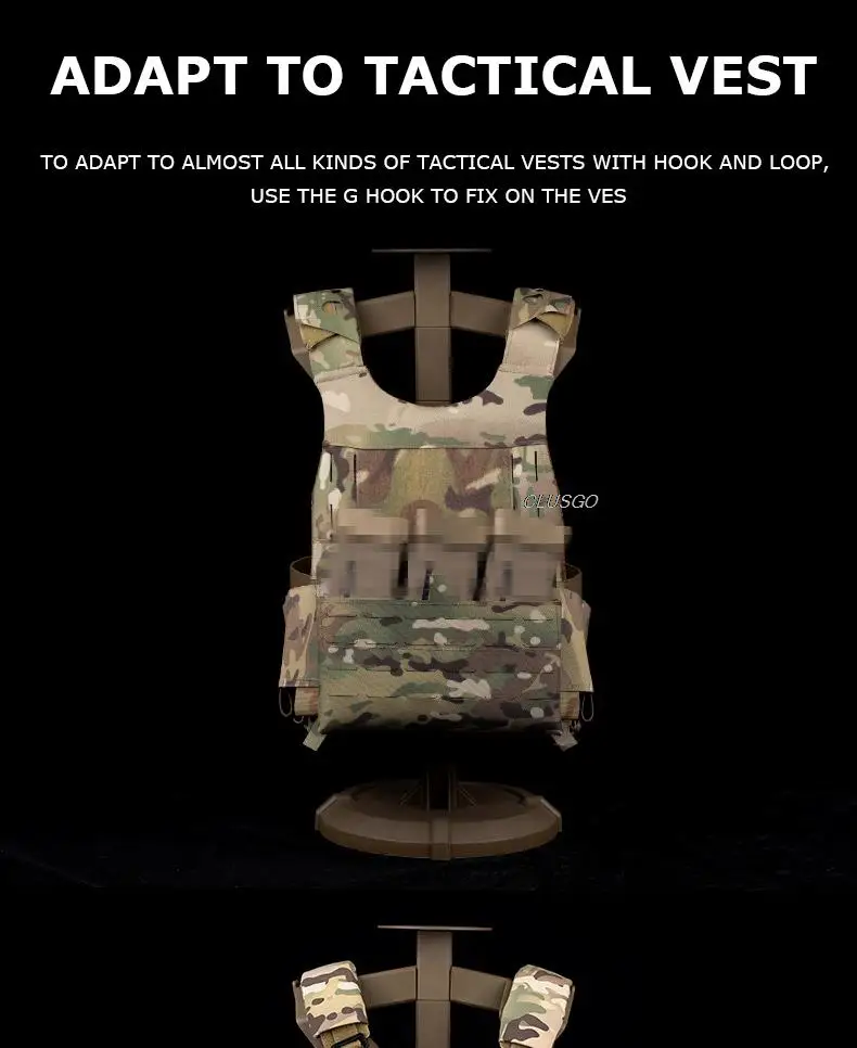 -Para adaptarse a casi todo tipo de chalecos tácticos con gancho y lazo, use el gancho G para fijar en el chaleco