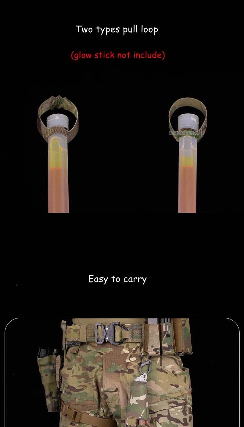 ✔ Montaje universal - Cuerda para colgar + banda elástica para cinturones/chalecos/mochilas.