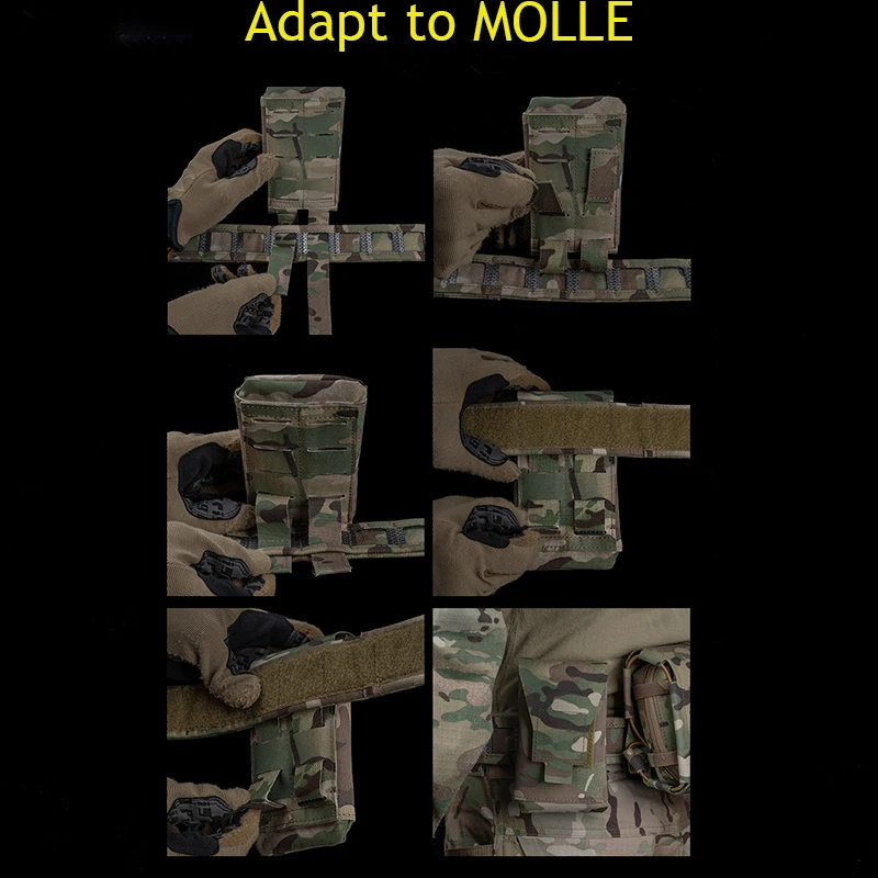 -Se puede instalar en equipos tácticos a través de MOLLE, lo cual es conveniente y rápido.Sólo se necesitan unos sencillos pasos para desplegar la bolsa interior.