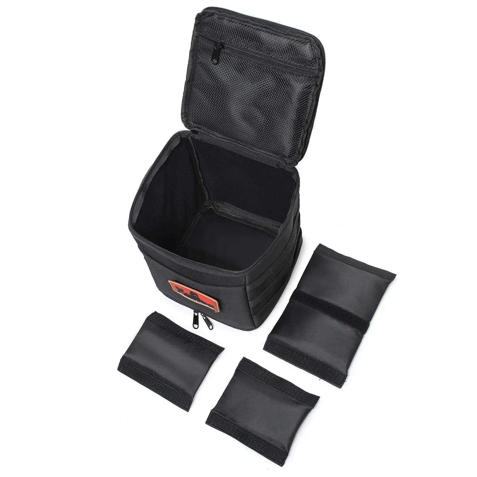 Product Features:Name:outdoor gas can storage bagColor:black,green,tan,MCWeight:about 450gSize:18cm*18cm*24cmMaterial:high quality nylonOne item includes a camping storage bag, three separating pads. Made of 600D nylon, durable and water-resistant. These camping storage bags are meant to last for years and provide anti-scraping protection for even the most rugged users. The front of the storage bag is a front pocket there is an area to attach the patch you like. There are molle panels on both sides of the pouch to add small items, like tactical flashlight, tactical pen and so on. Size: 18cm*18cm*24cm. The nylon bag itself is a big compartment and it is foldable, you can add the three separating pads to the hook and loop lining to create four small compartments of different size. There is a zipper mesh pocket on the top of the bag. You can carry the bag with the handle. The camping storage bag is equipped with two way zipper both on the top and the bottom of the bag. You can quickly access our bag with the two way zipper. Our camping storage bag is perfect for storing camping cookware and other small items, for example: gas cylinder, seasoning, cutlery and so on. You can also leave it in your trunk as a trunk organizer. you can fold it to save space when you don't need it. It is a versatile storage bag for camping, hiking and travelling. Three colors to choose from: black, coyote brown & od green.