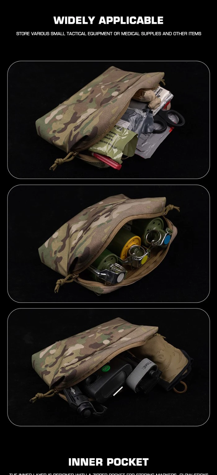 Nombre del producto: Bolsa táctica universal multifuncional (6X9 pulgadas)Tamaño: 26*20*3 cm aproximadamentePeso neto: 0,118 KG aproximadamenteEl paquete incluye:1 * bolsa (no incluye otras)