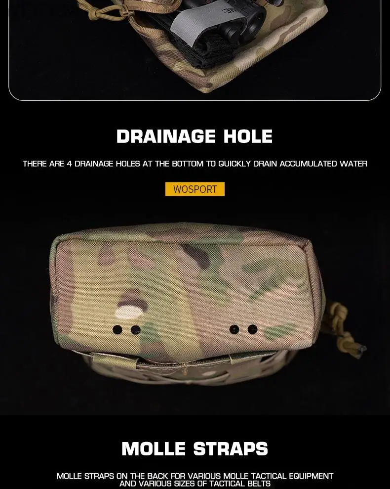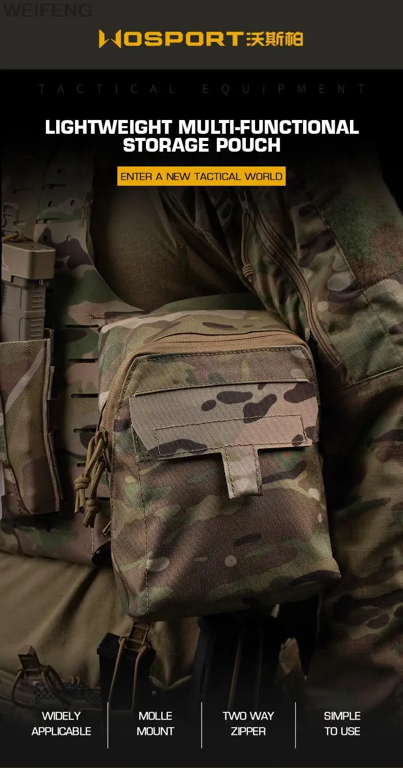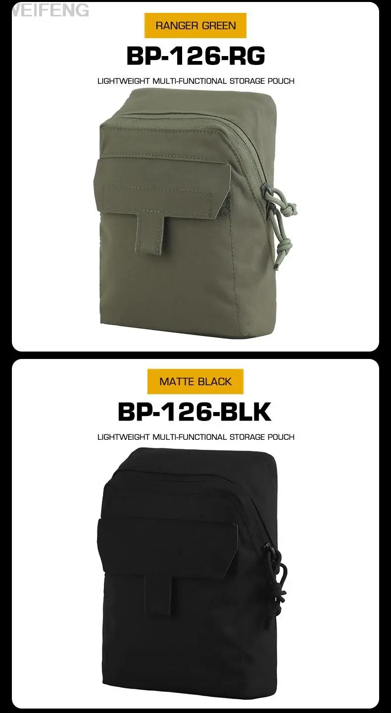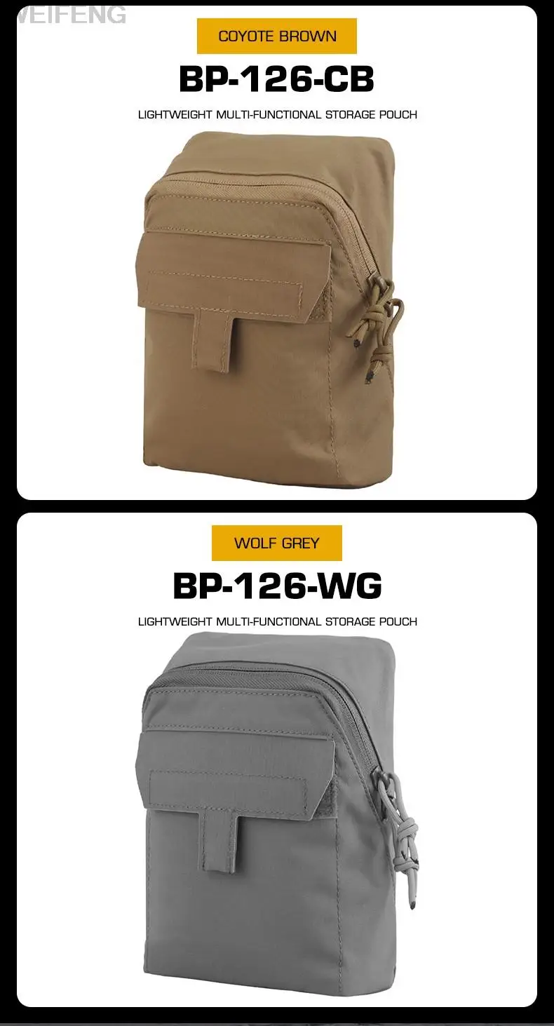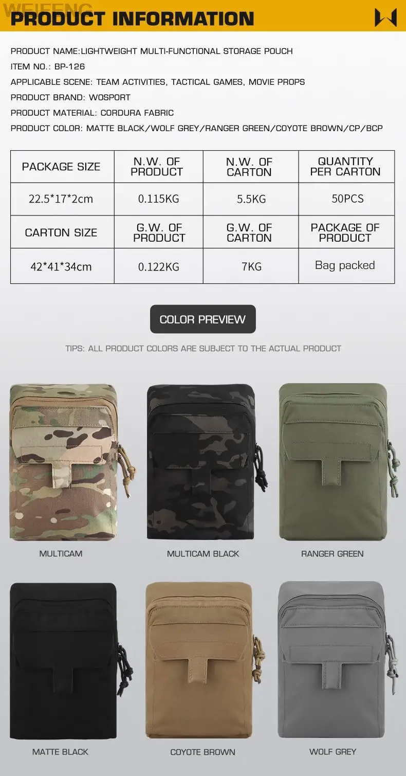 Nombre del producto: Bolsa de almacenamiento multifuncional ligera Artículo No.: Embalaje del producto: tamaño del producto empaquetado en Bolsa: 22,5*17*2cm peso neto del producto: 0.115KG peso bruto del producto: 0.122KG color del producto: negro mate/gris Lobo/Verde Ranger/marrón Coyote/CP/BCP Material principal: tela Cordura El paquete incluye: 1 * bolsa EDC