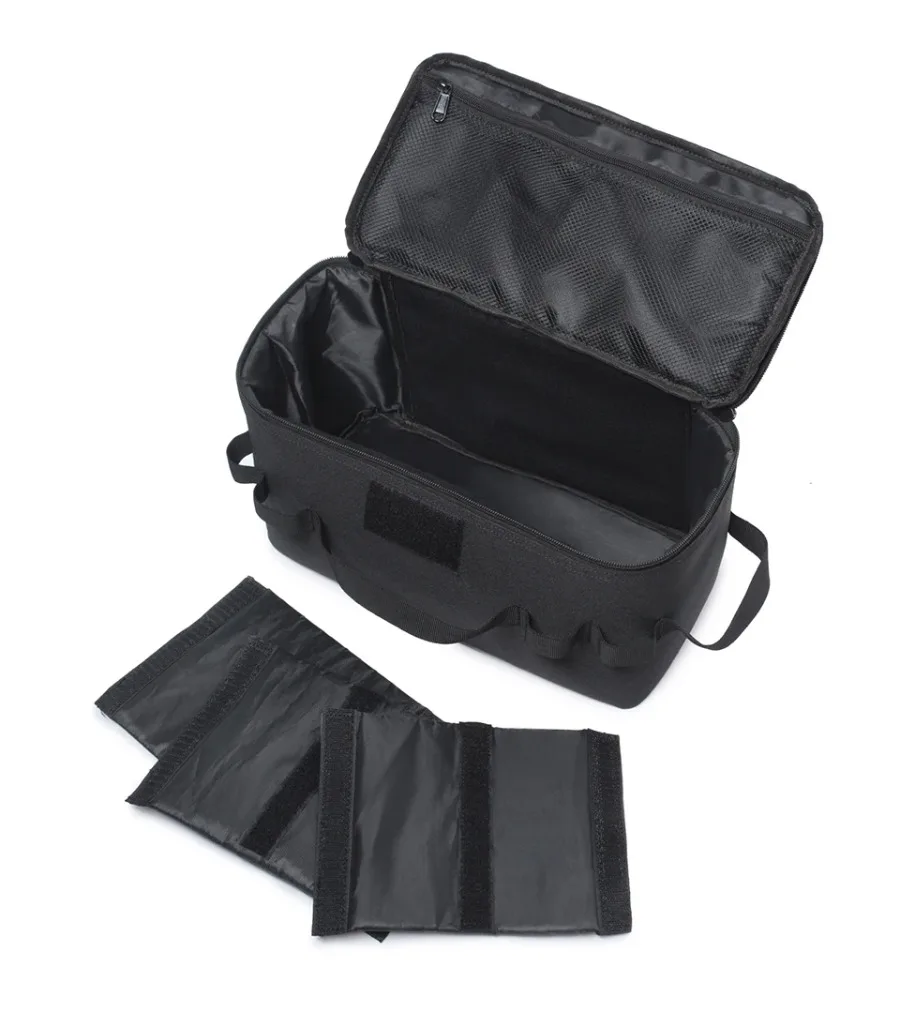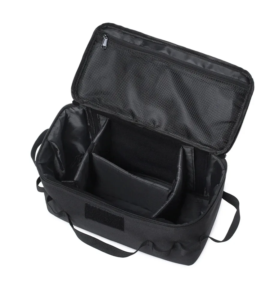 La bolsa de nailon en sí tiene un compartimento grande y es plegable, y puede agregar tres almohadillas divisorias al forro de gancho y bucle para crear cuatro compartimentos pequeños según sea necesario.Las almohadillas divisorias son extraíbles para crear compartimentos de diferentes tamaños.Hay un gran bolsillo de malla con cremallera en la parte superior del bolso.