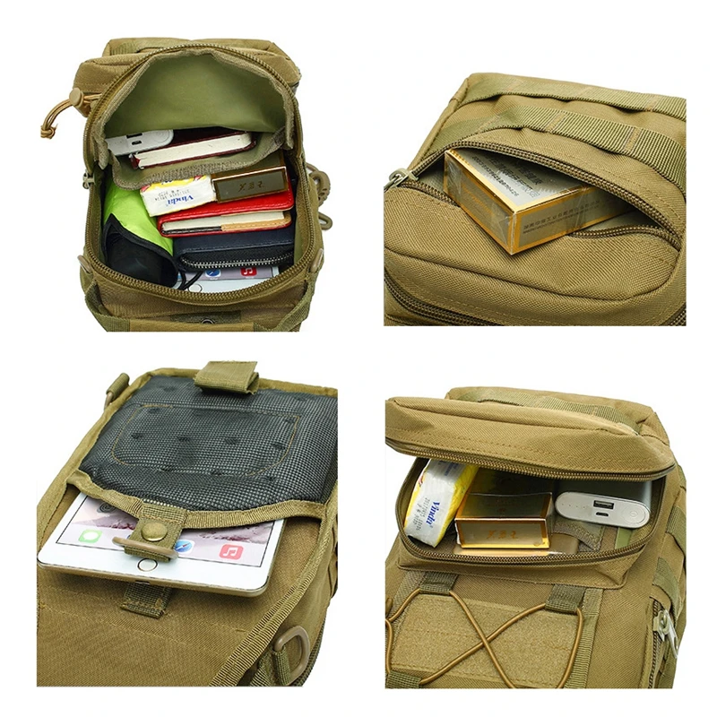 Características: Fabricada con tela militar Oxford 600D de alta densidad y duradera. -Innovador diseño de hombro de eslinga ambidiestro único. -Compartimento principal con dos bolsillos y compartimento inferior frontal con bucles organizadores elásticos y retención de llaves. -Cuenta con un compartimento principal espacioso con cierre de cremallera, bolsillos de malla y compartimentos de almacenamiento frontal con cremallera. -Asegure su espalda con un cinturón de pecho ajustable y un cierre de cinturón de cadera. -Las correas de hombro acolchadas y ajustables alivian la presión en los hombros mientras transportan cargas pesadas. -El respaldo de malla transpirable proporciona una sensación cómoda en climas más cálidos. -Asa de transporte y arrastre resistente. -Tira de doble cremallera en cada compartimento para un fácil acceso. -Correa de hombro ajustable y estilosa. -Varios puntos de fijación para la expansión modular. Para: ciclismo, aventura, viajes, escalada, senderismo, Camping, pesca Material: tela Oxford 600D Material Oxford: Oxford 600D Características: estilo táctico Color: Patrón de pitón negro, caqui, negro, patrón de pitón de Color barro Peso del paquete: 0,4 kg Tamaño del producto (largo x ancho x alto) : 28x18x13 cm/11,02x7,08x5,12 pulgadas Contenido del paquete: 1 mochila táctica bandolera