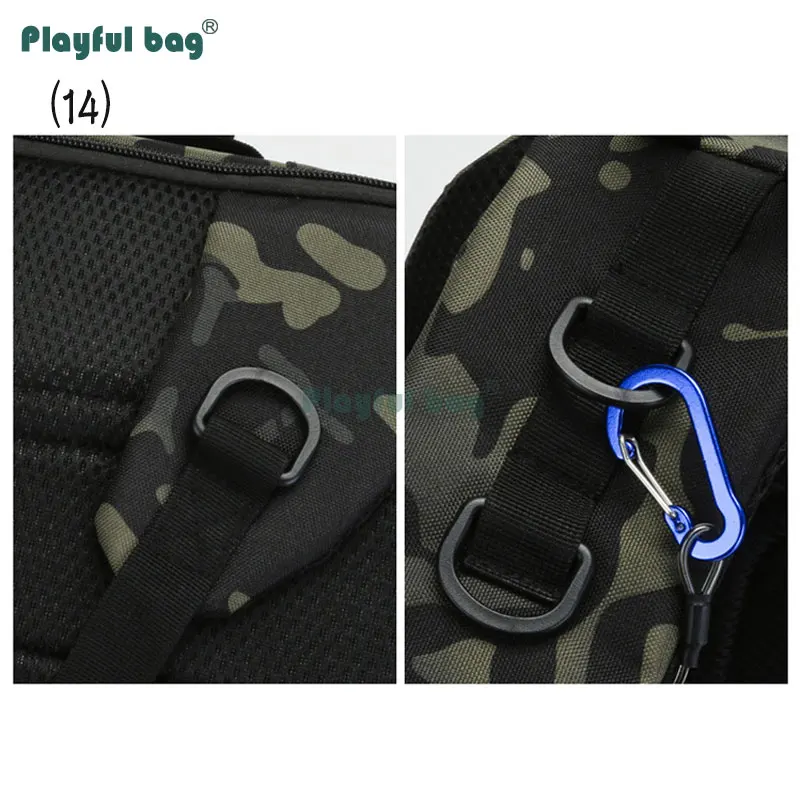 (14) Hebilla de anillo externa multifuncional, conveniente para transportar varios artículos