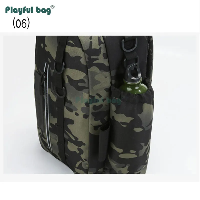 (06) El bolsillo lateral elástico se utiliza para colocar la botella de agua y la taza para evitar que se caigan.