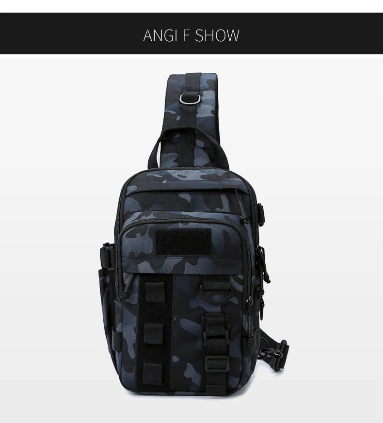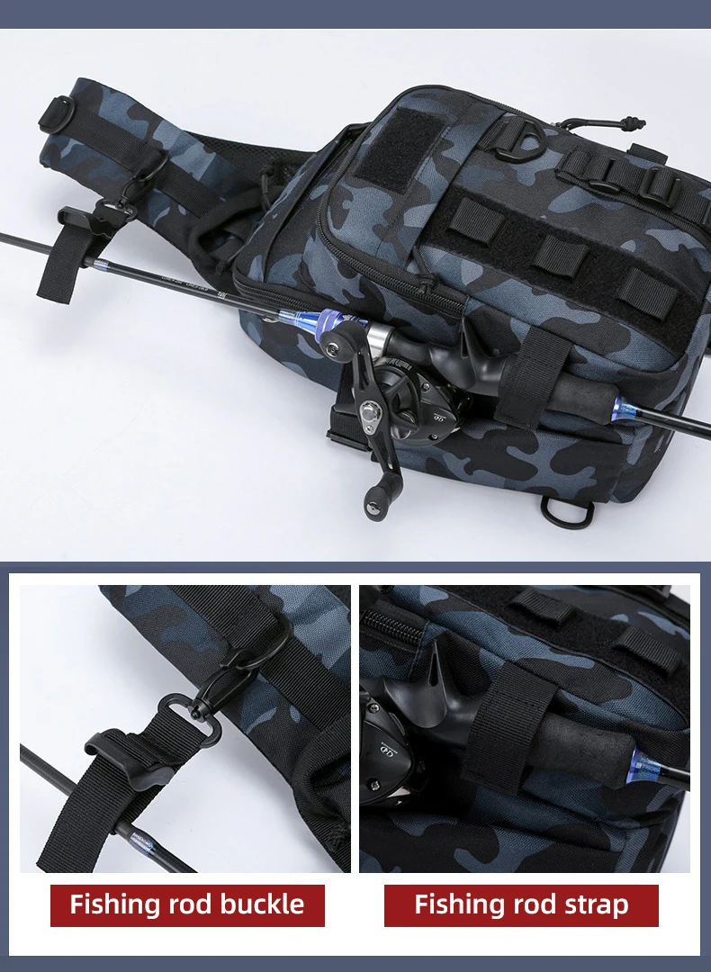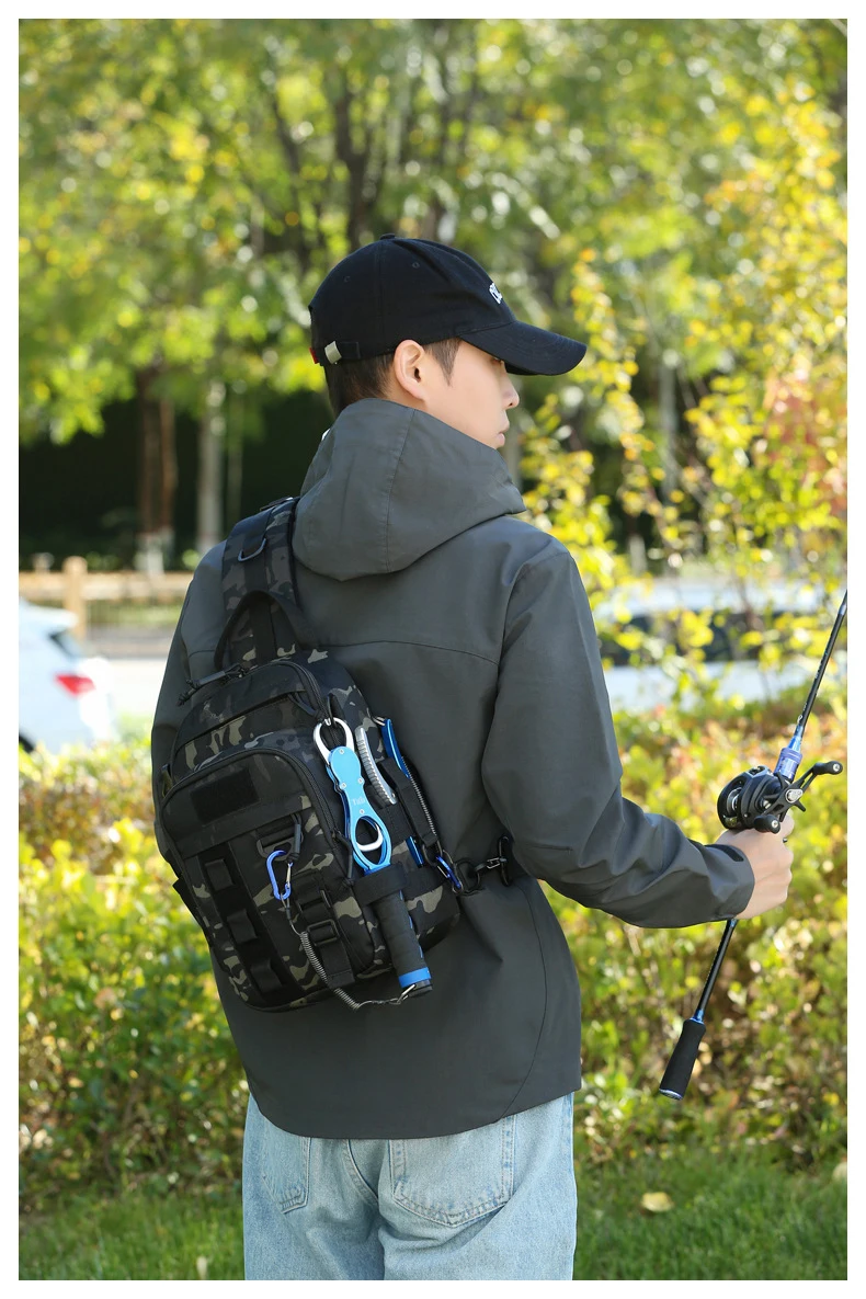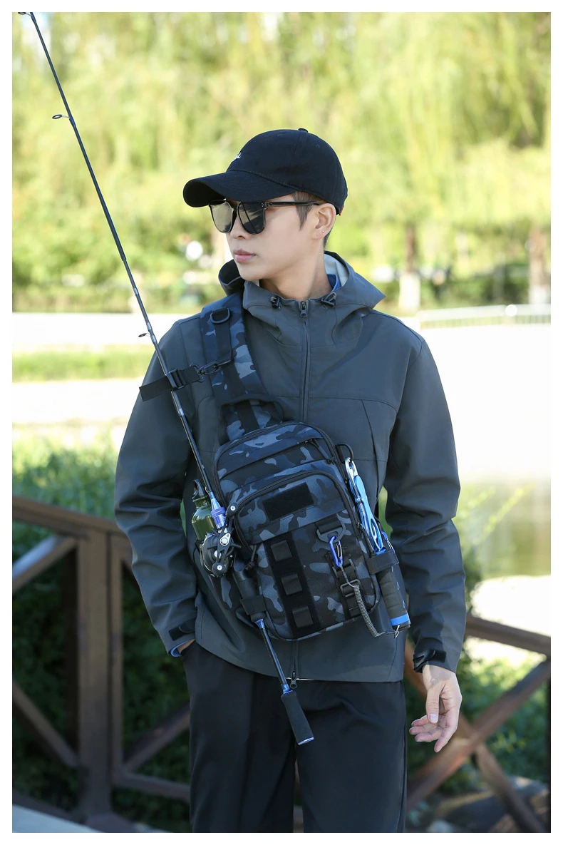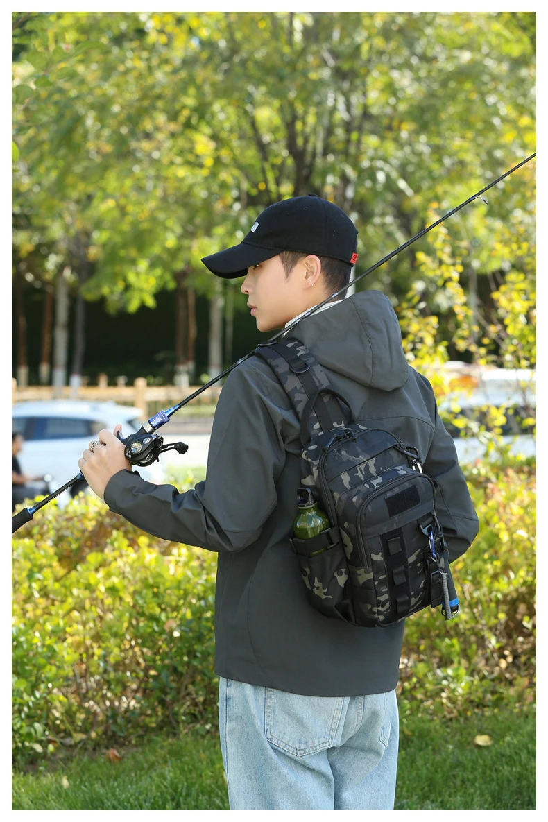 Bolso cruzado de camuflaje para el pecho, mochila de viaje de pesca de gran capacidad para almacenamiento de equipo de pesca
