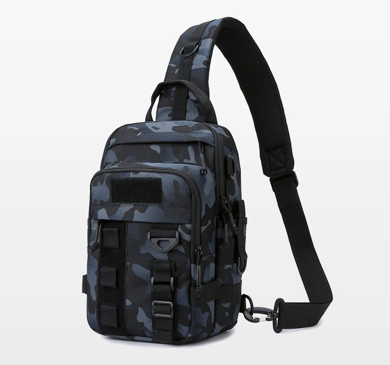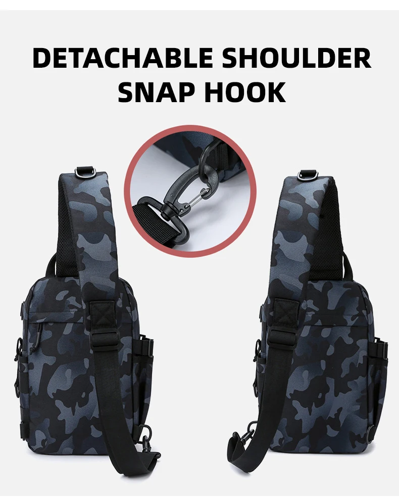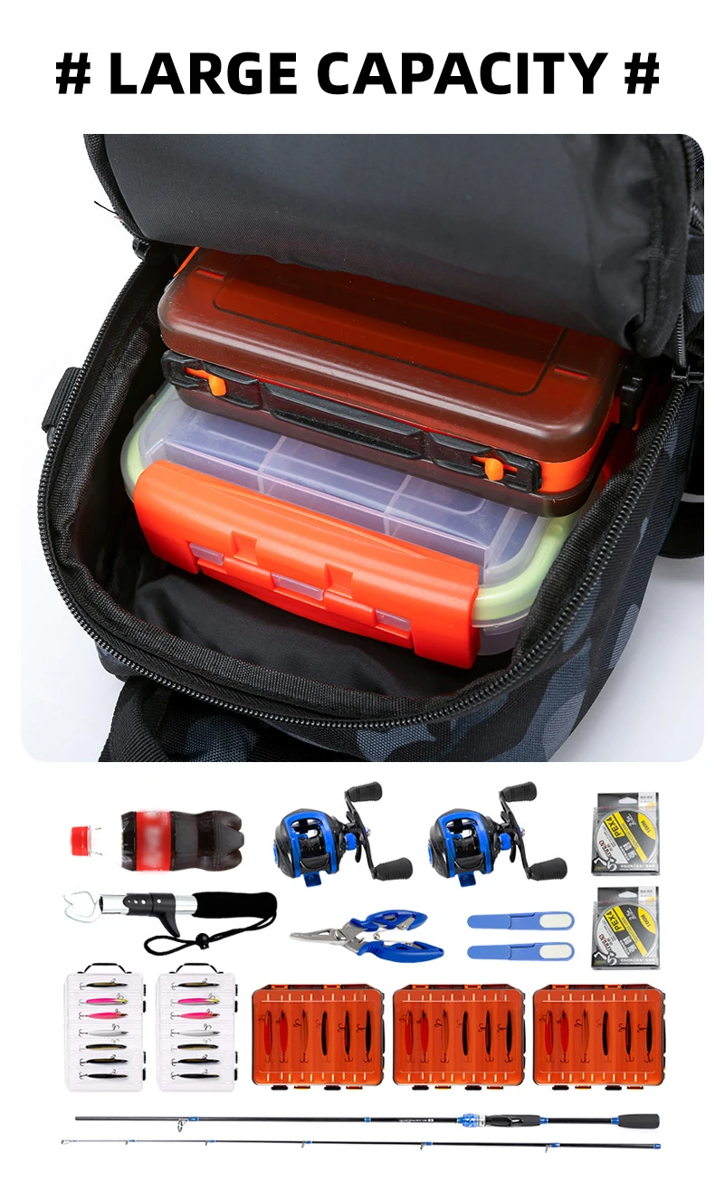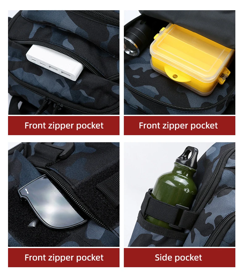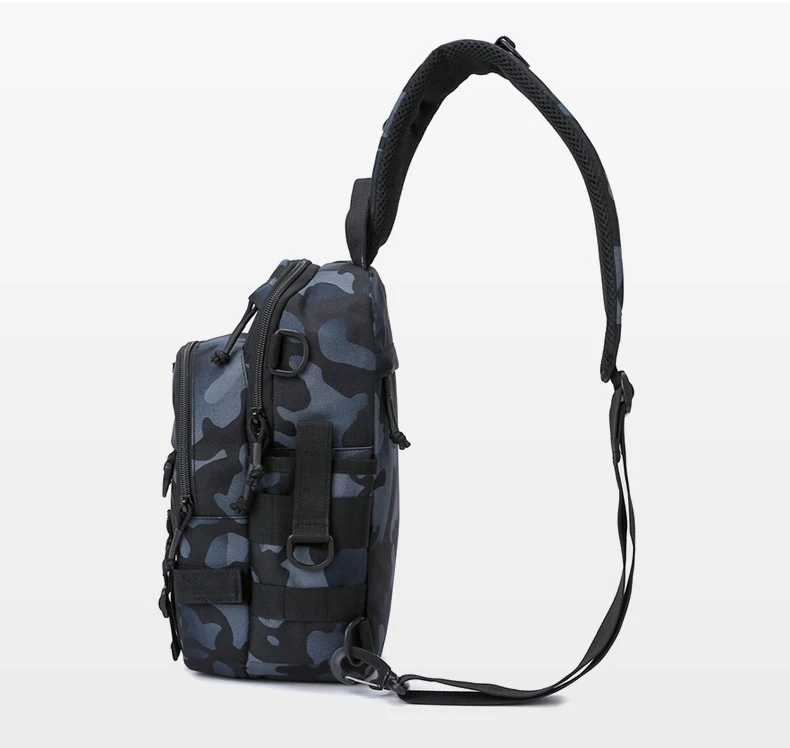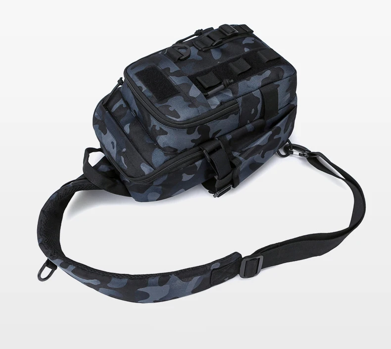 Bolso cruzado de camuflaje para el pecho, mochila de viaje de pesca de gran capacidad para almacenamiento de equipo de pesca