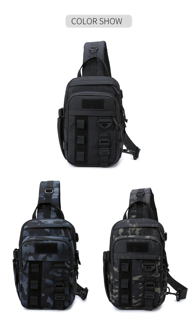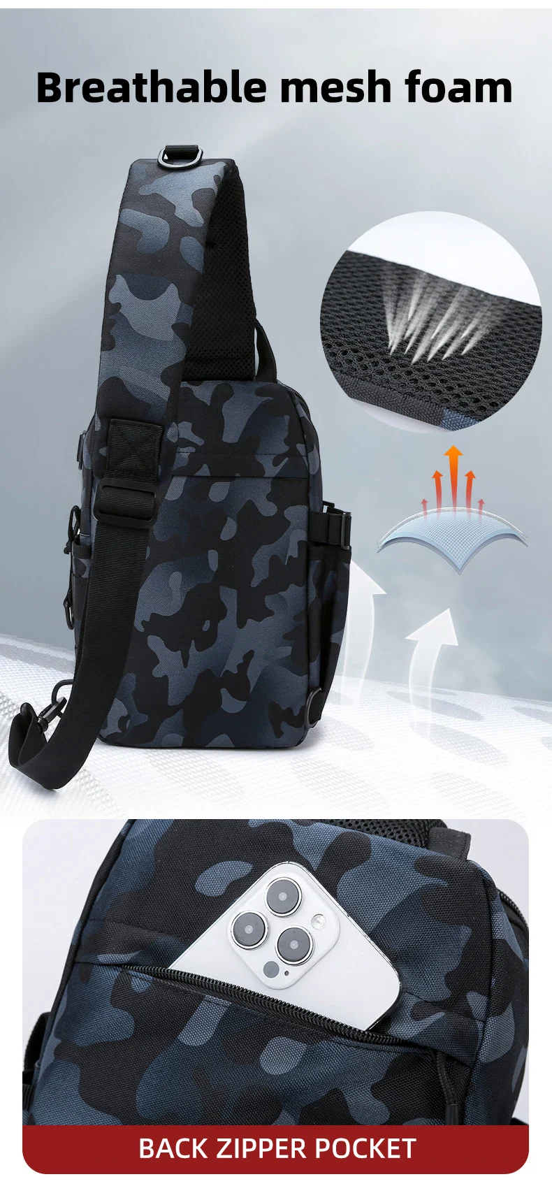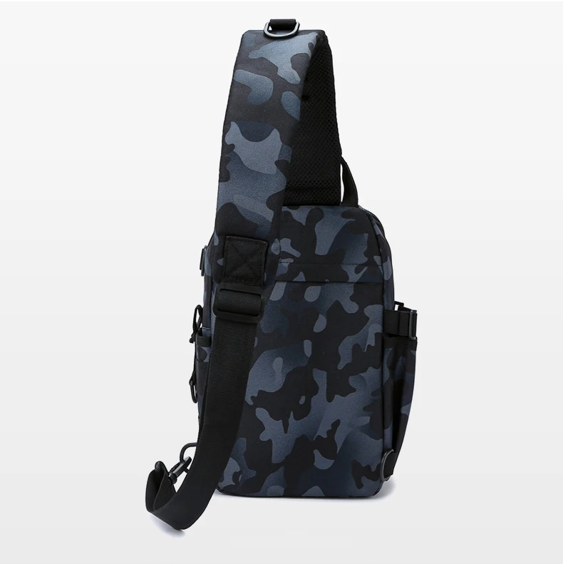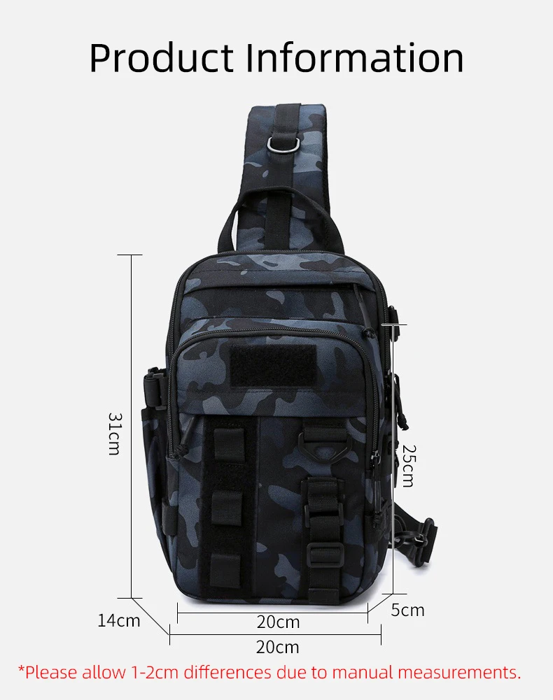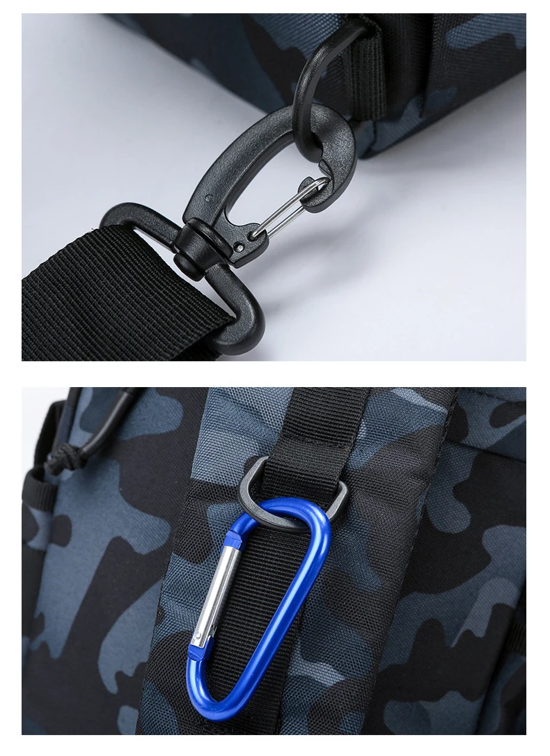 Bolso cruzado de camuflaje para el pecho, mochila de viaje de pesca de gran capacidad para almacenamiento de equipo de pesca