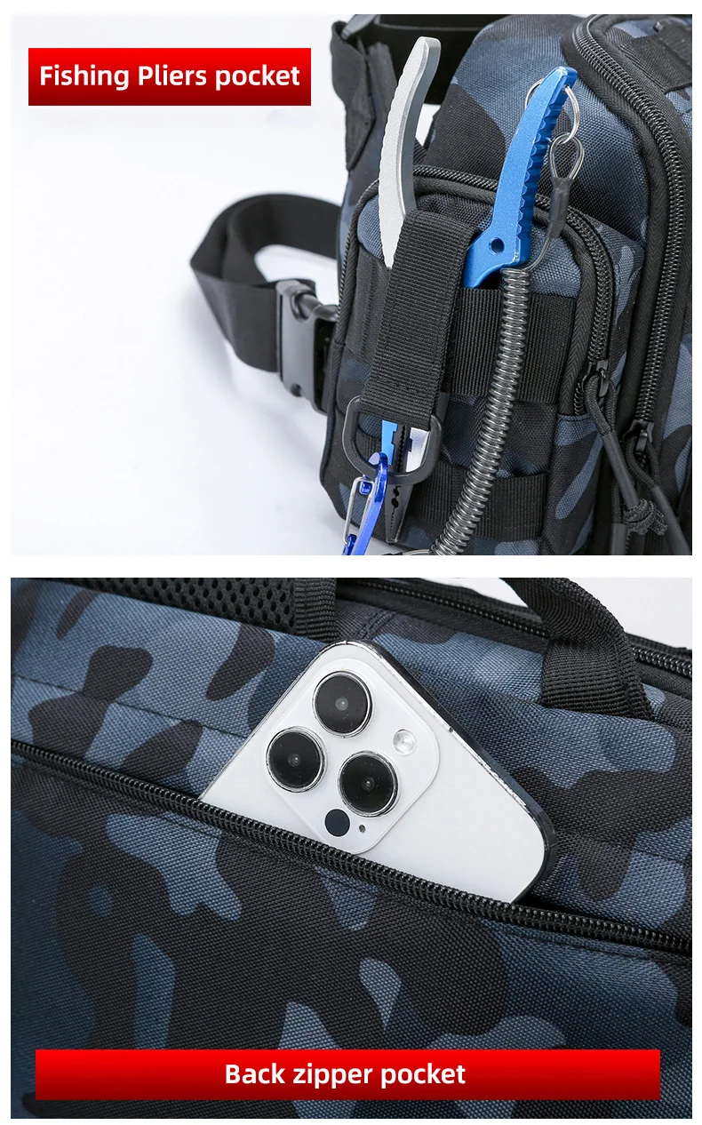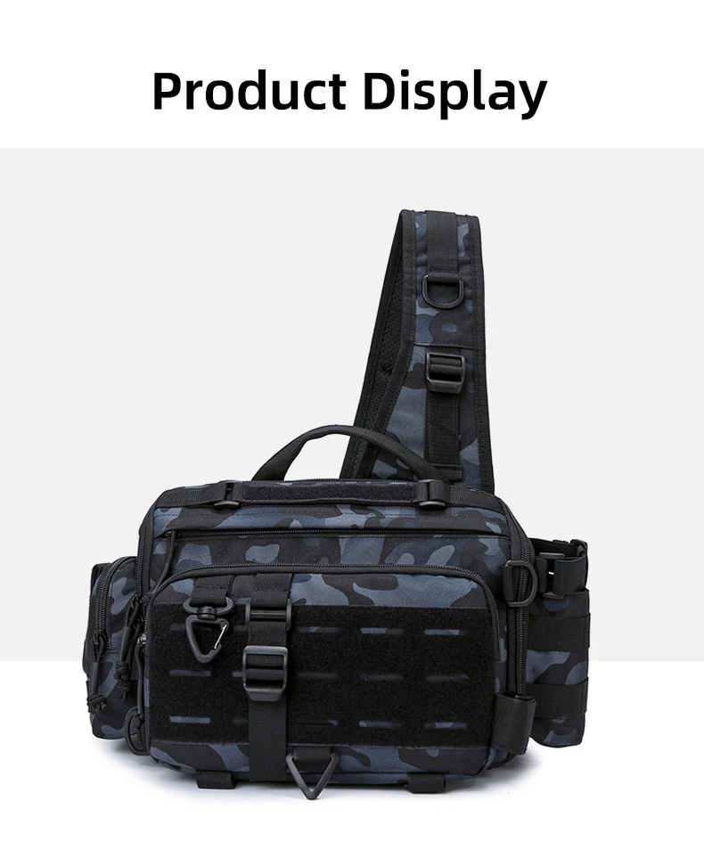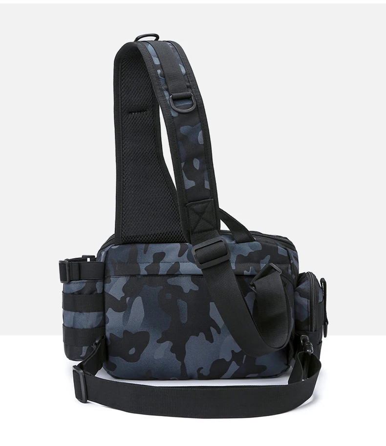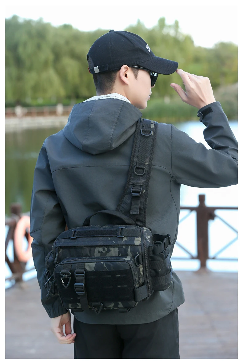 Riñonera cruzada de camuflaje para exteriores, bolsa de caña de pescar repelente al agua para almacenamiento de equipo de pesca