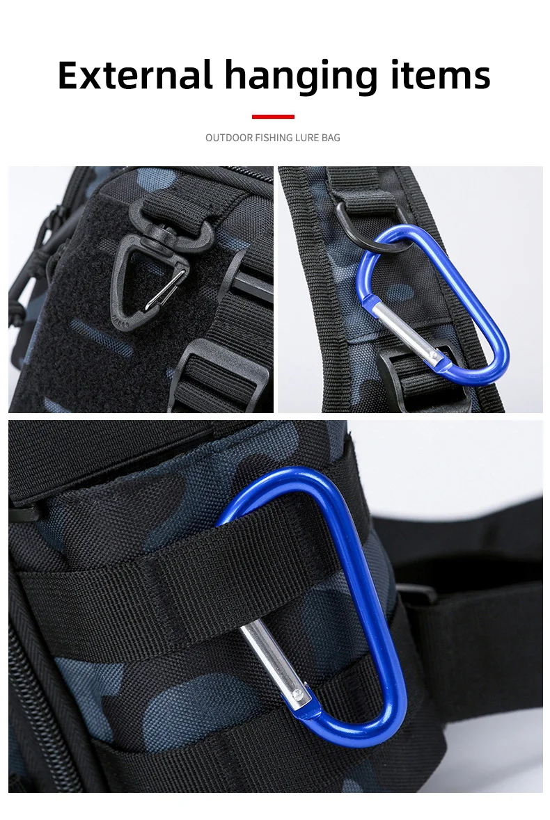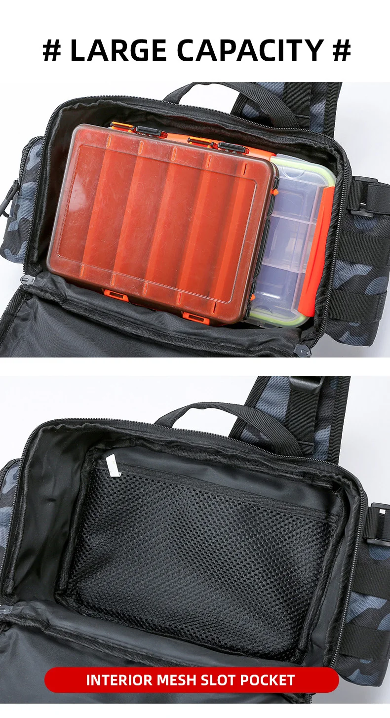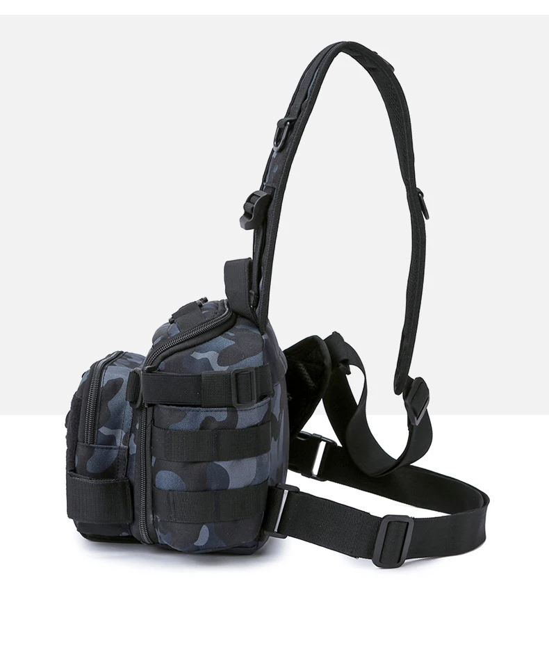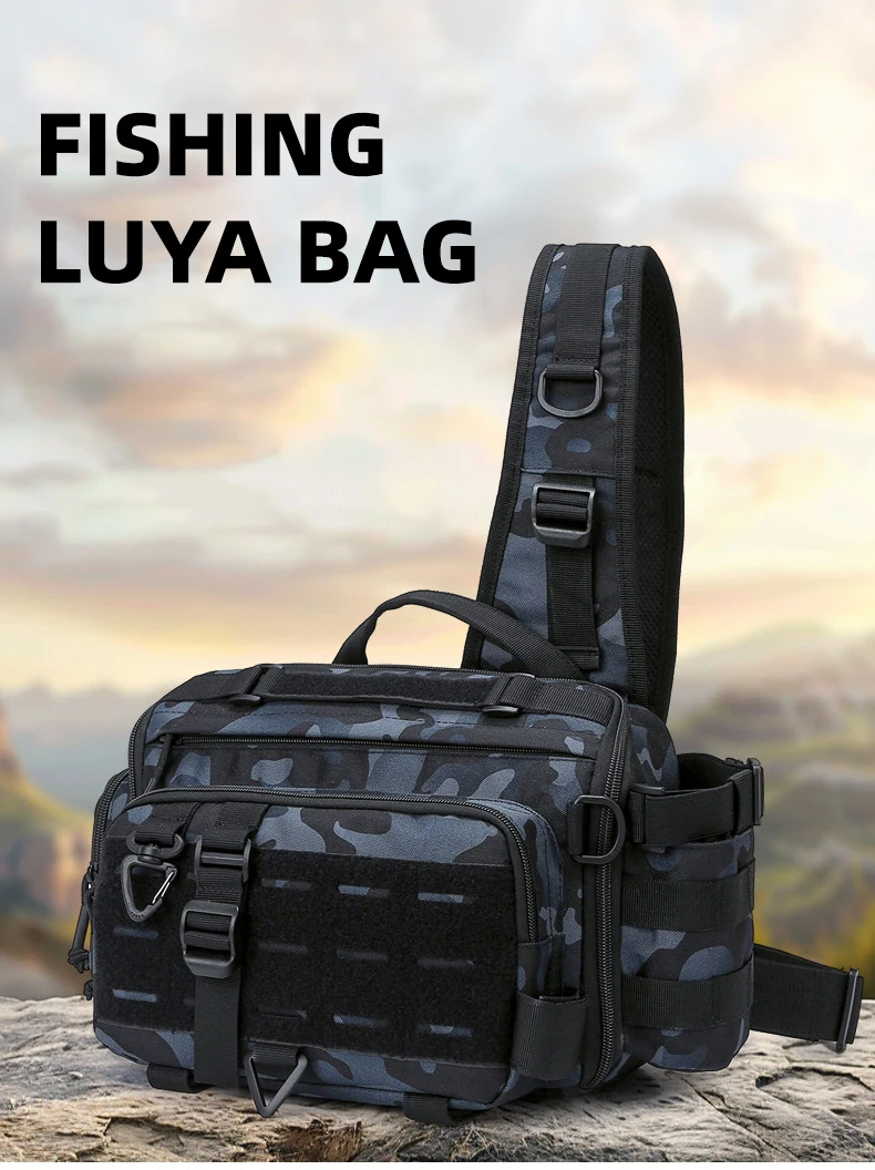 Riñonera cruzada de camuflaje para exteriores, bolsa de caña de pescar repelente al agua para almacenamiento de equipo de pesca