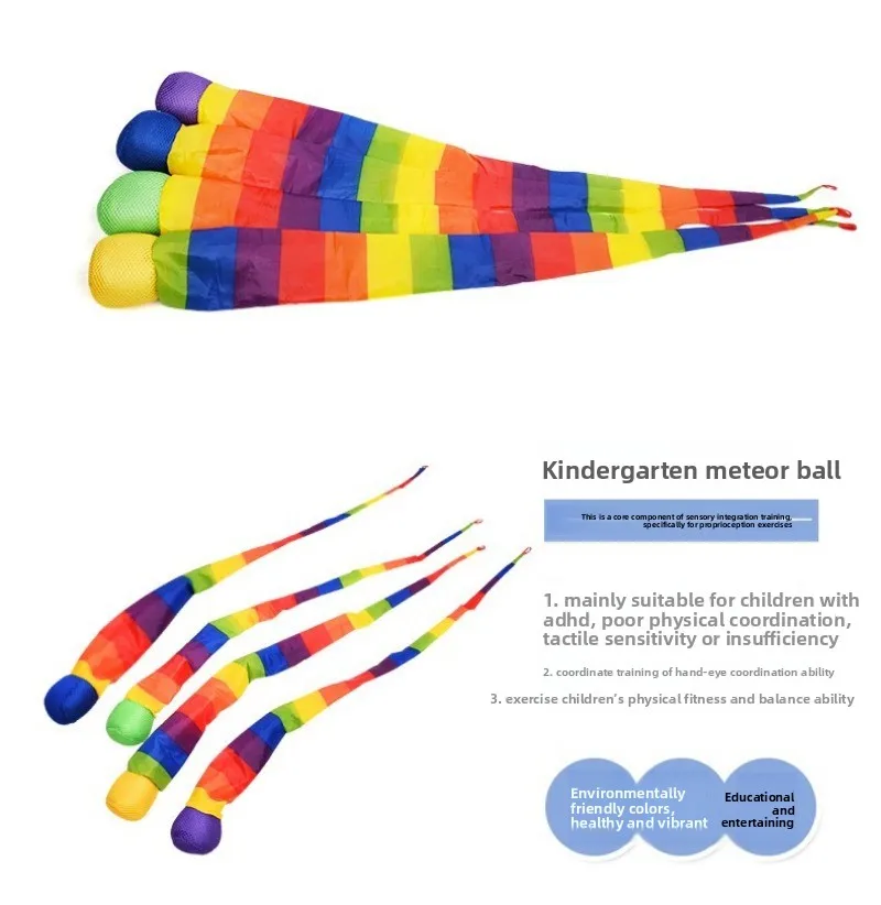 Bolsa de arena interactiva de arcoíris a prueba de viento para niños, juguete para padres e hijos al aire libre, bolsa de arena deportiva con bola de meteorito, entrenamiento sensorial