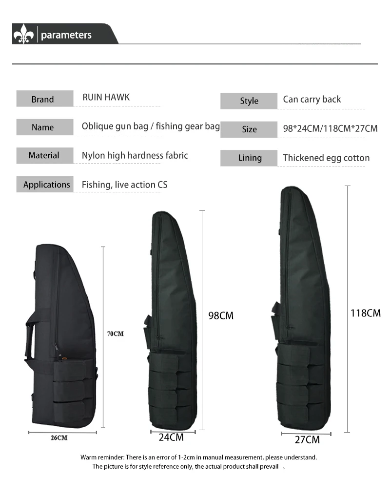 -Puede poner rifle con el visor en esta bolsa para armas.