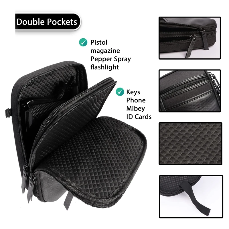 【Material】: La bolsa de pistola está hecha de nailon resistente al agua y cuero PU, duradero y ligero. Ofrece una gran protección para su pistola, revista, teléfono y otros accesorios pequeños.