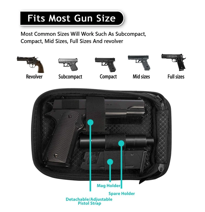 【Tamaño】: Tamaño de la caja de esta pistola: 9,5 "× 7,5" × 2 ". El tamaño de la bolsa funcional se adapta a la mayoría de los tipos de pistolas y parece una bolsa de uso diario. ¡Evita cualquier atención no deseada en público!