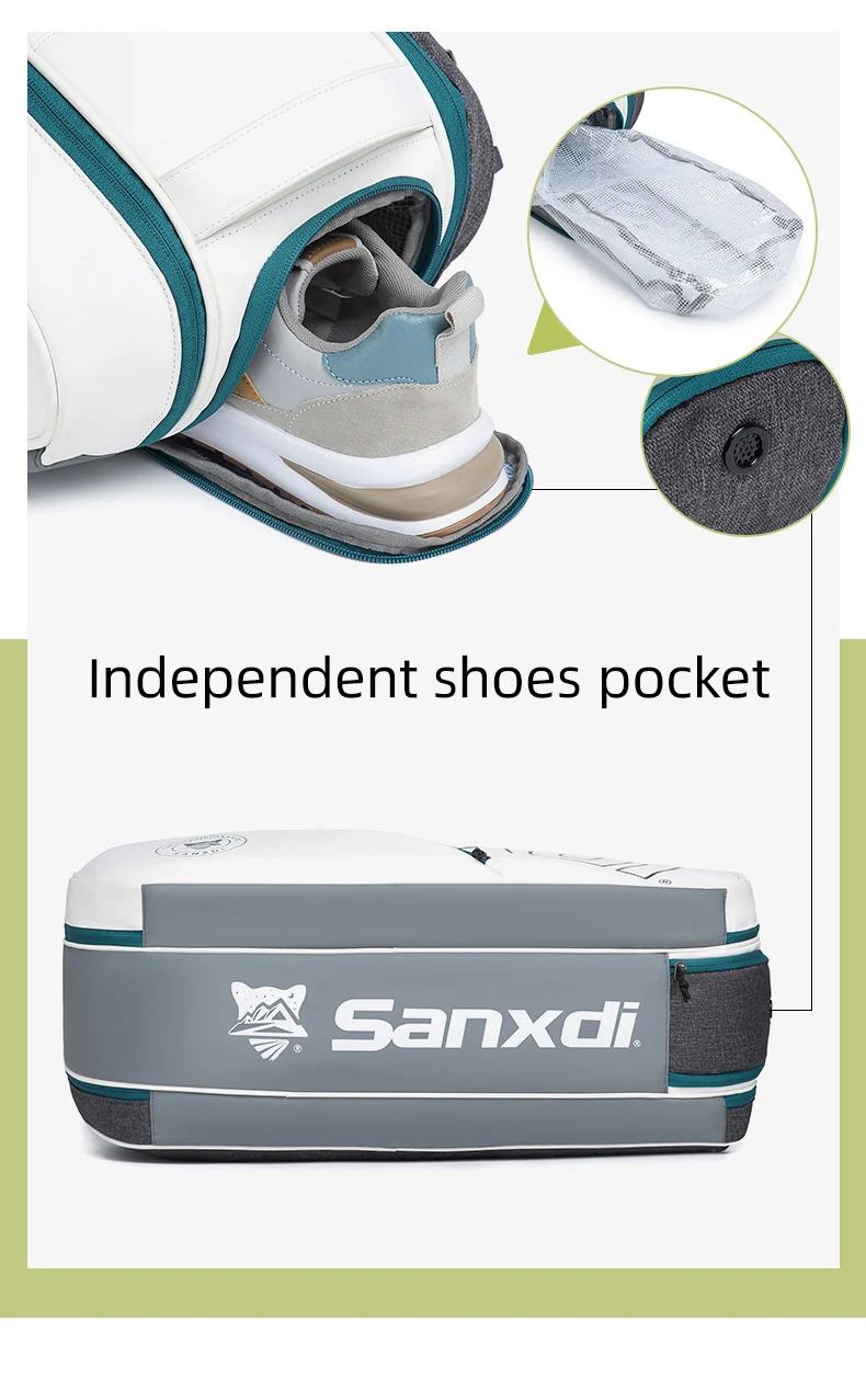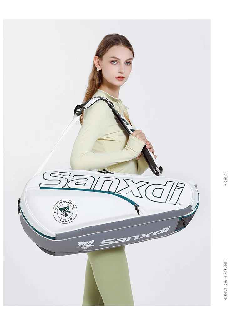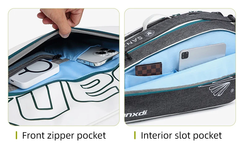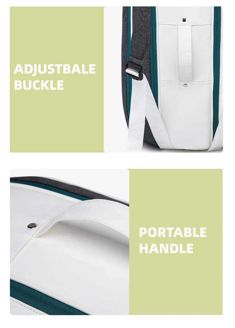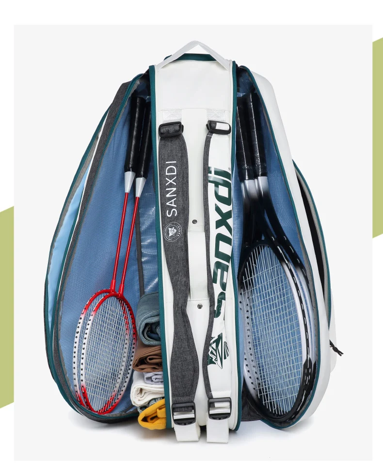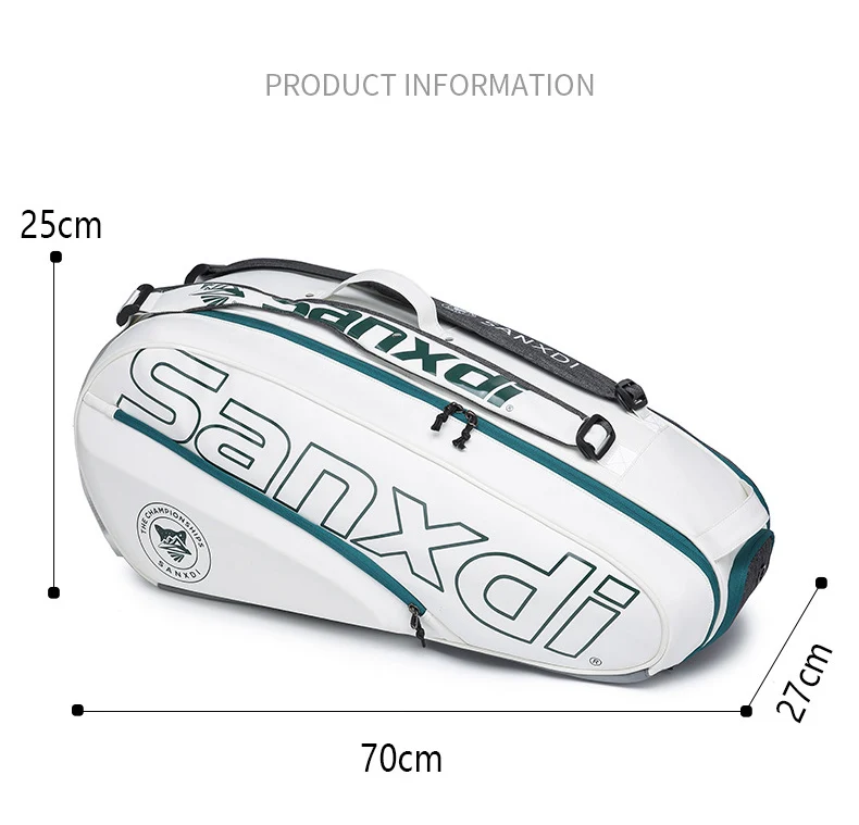 1.Multi-compartment large capacity: new 2/4/6 racket pockets distribution, increase the capacity of the middle pocket, in order to better manage shoes, clothing, equipment
