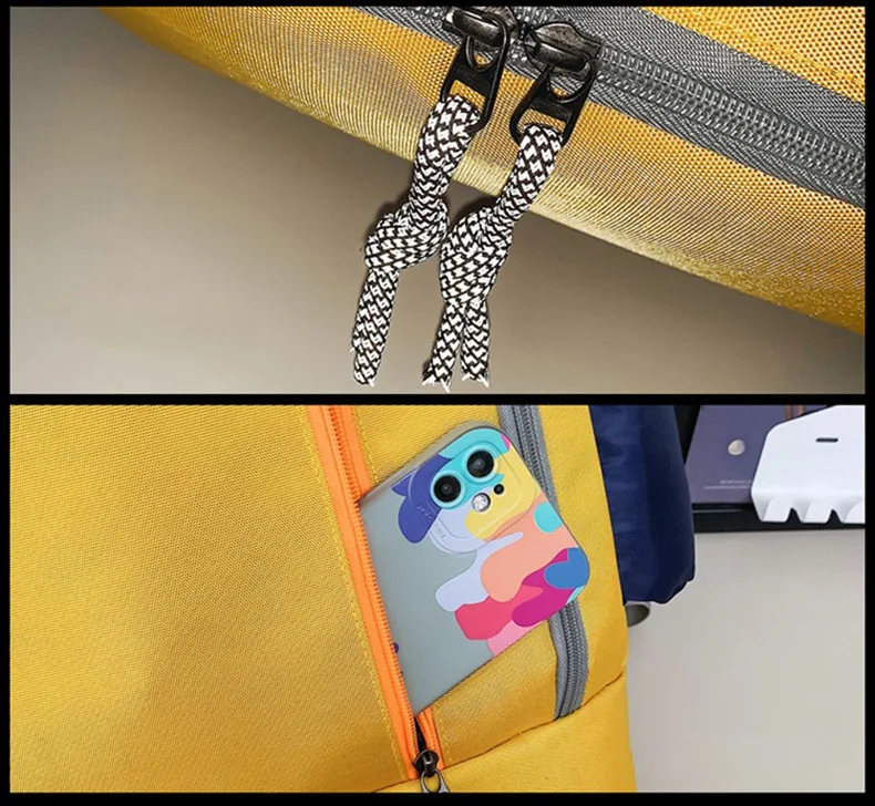 2. Diseño de bolsillo principal de gran tamaño, almacenamiento de gran capacidad, bolsillos laterales con cremallera para artículos pequeños, paraguas y tazas.Diseño de bolsillo independiente para zapatos, correa de hombro ajustable, ajuste reflectante nocturno, bolsillo frontal con cremallera para teléfono celular y tarjetas, etc.