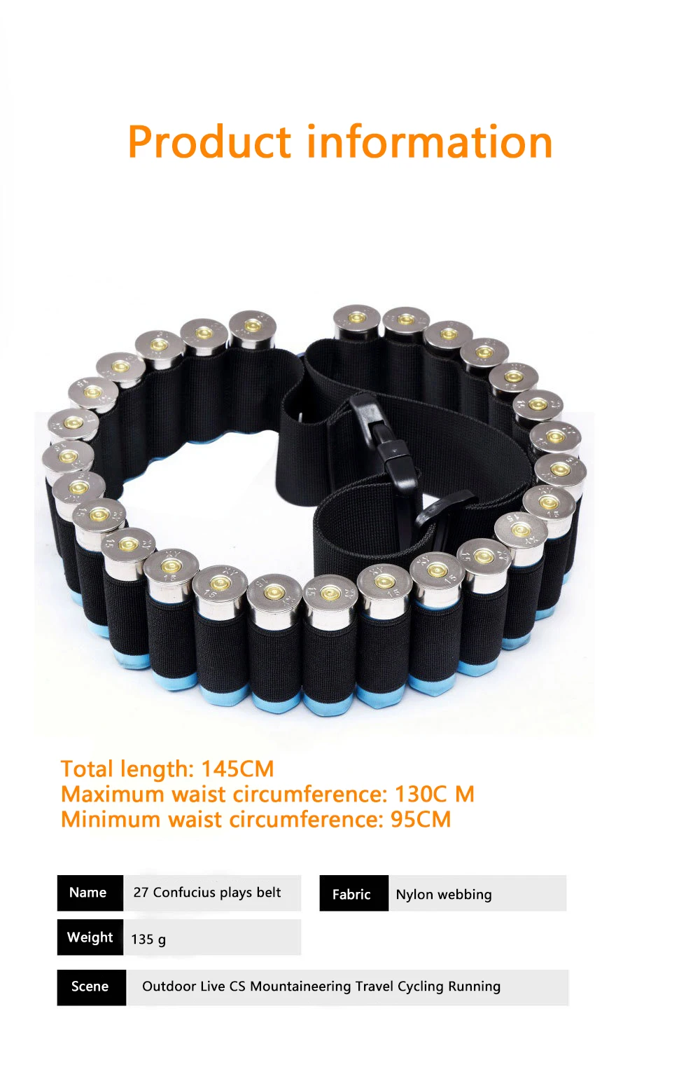 Cinturón de almacenamiento deportivo CS de 145 cm para exteriores, 12G con balas de escopeta de 27 agujeros, cinturón de almacenamiento táctico para caza con 27 rondas