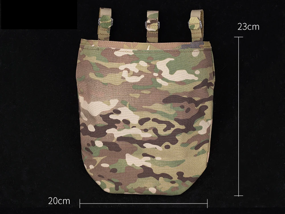 ① La bolsa de descarga cónica está hecha de tela de nailon 500D laminada ligera y duradera. La medida de la bolsa de descarga molle cuando está desplegada es W 20cm/8 pulgadas y H 23cm/9 pulgadas.