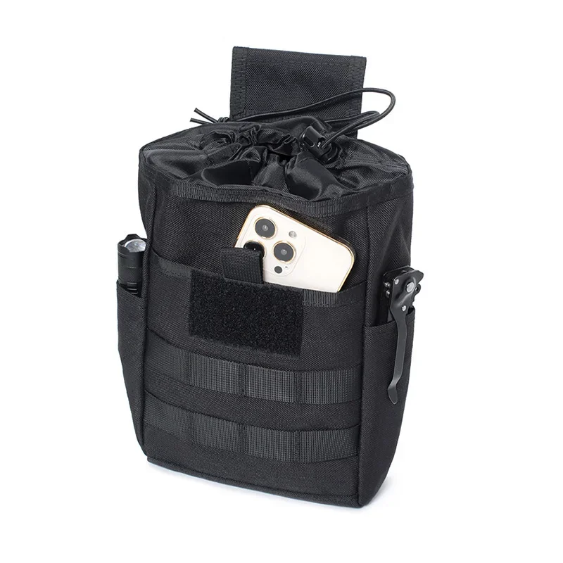 Bolsa MOLLE Dump fabricada en duradero nailon Cordura impermeable 1000D y goma elástica superior con revestimiento resistente al agua.La bolsa plegable le permite guardar rápidamente sus artículos en una bolsa conveniente cuando la necesite.