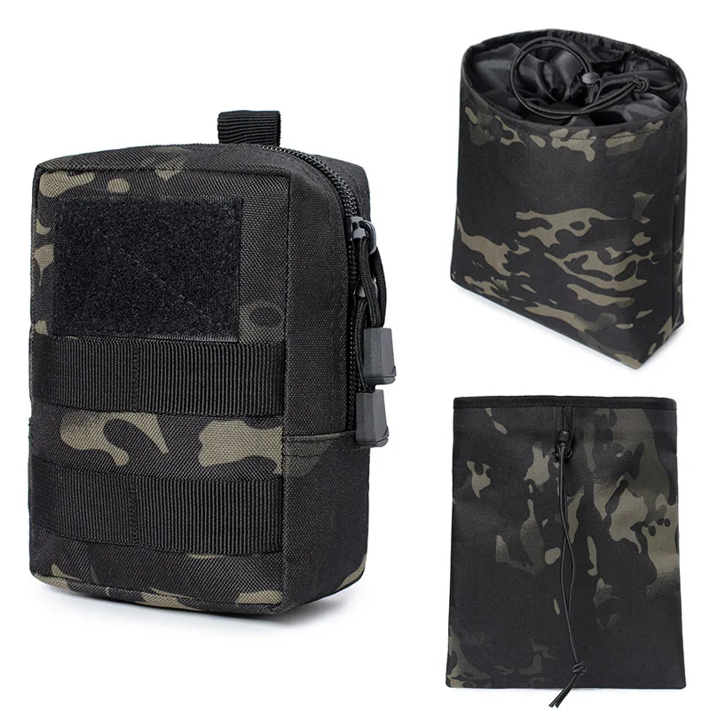 Material: nailon 600D Tamaño: 21x17CM Apto para cinturón táctico y cualquier chaleco de sistema molle La bolsa anticaída es esencial para mejorar la velocidad del cambio de revista Con botón de presión en la parte posterior, fácil de poner la bolsa en su cinturón o chaleco. Cuerda elástica para cierre en ayunas Puede doblar la bolsa para mantenerla más pequeña Lo mejor para llevar cosas personales, como teléfono móvil, cartera, tarjetas, llaves, etc.