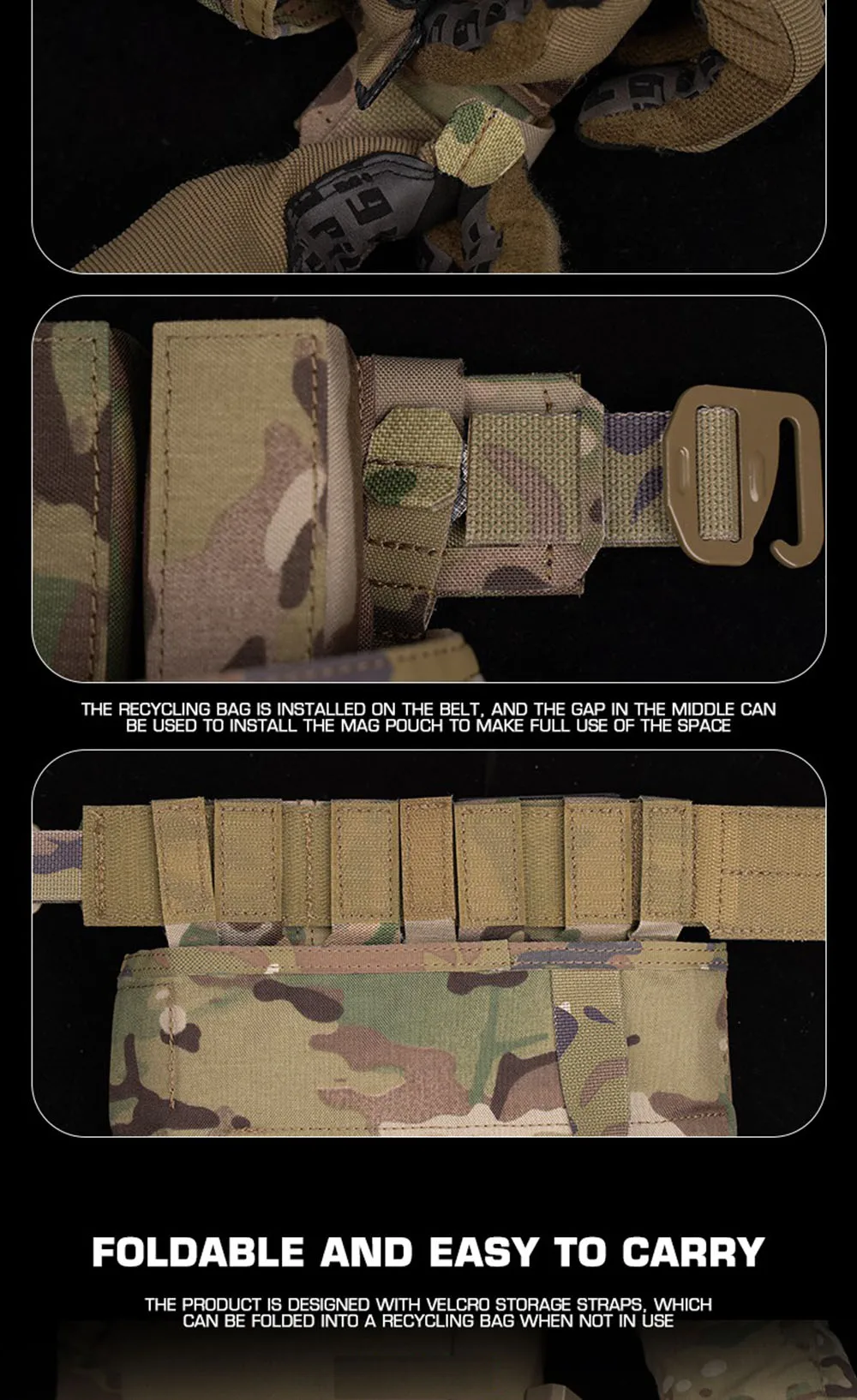 Cinturón de cintura táctico Bolsa de descarga Bolsa de reciclaje de PHC plegable Bolsa de artículos diversos Gran espacio
