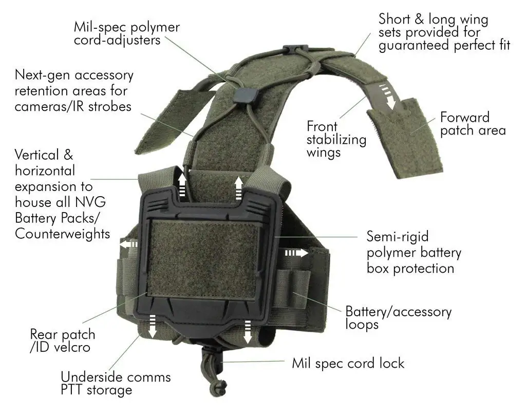 ➤ Gran Capacidad: cuenta con una cápsula universal propiciatoria que se expande y contrae tanto vertical como horizontalmente para albergar perfectamente todos los paquetes de baterías NVG comúnmente emitidos.