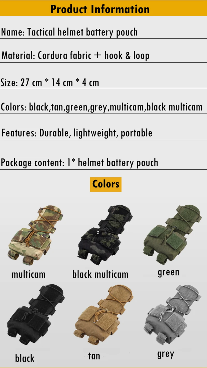 ●Esta bolsa para batería de casco se fija al casco táctico mediante un sistema de gancho y bucle, fácil carga y descarga, más bucle diseñado para cargar su equipo micro táctico.