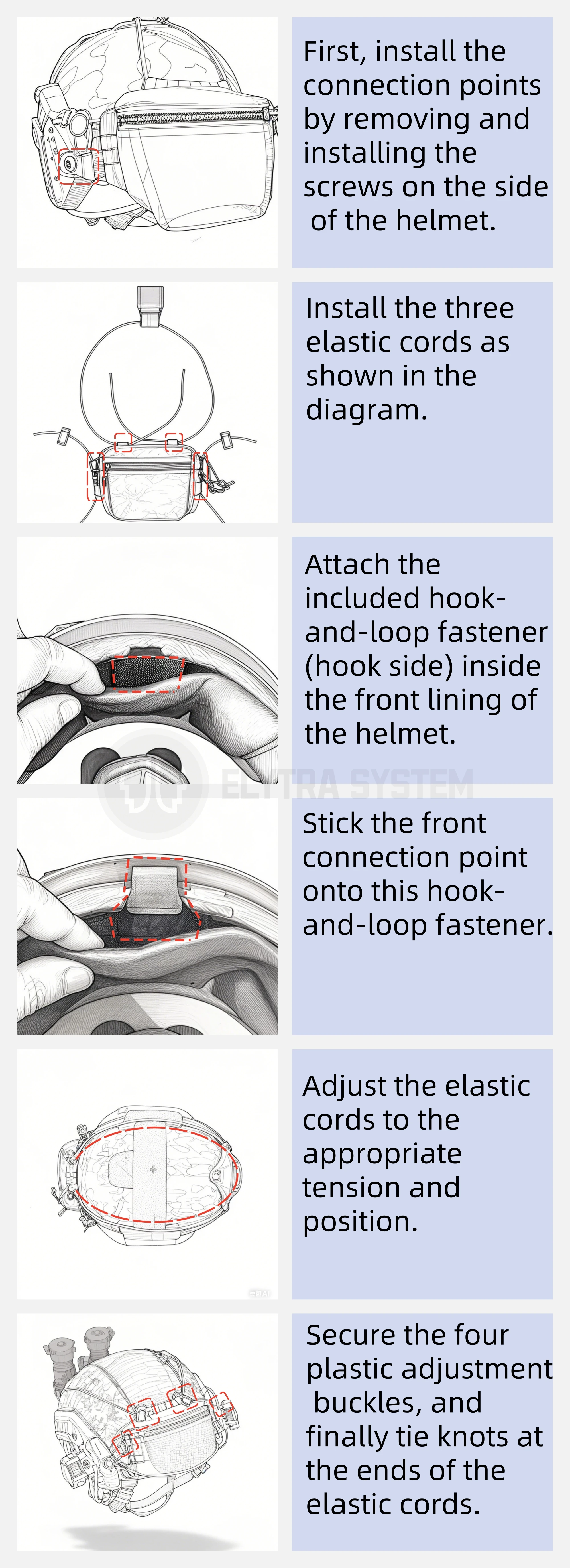 Múltiples puntos de anclaje: los puntos de anclaje en los lados y en la parte superior permiten un fácil montaje en el casco y otros dispositivos de anclaje, mejorando la estabilidad durante el uso.