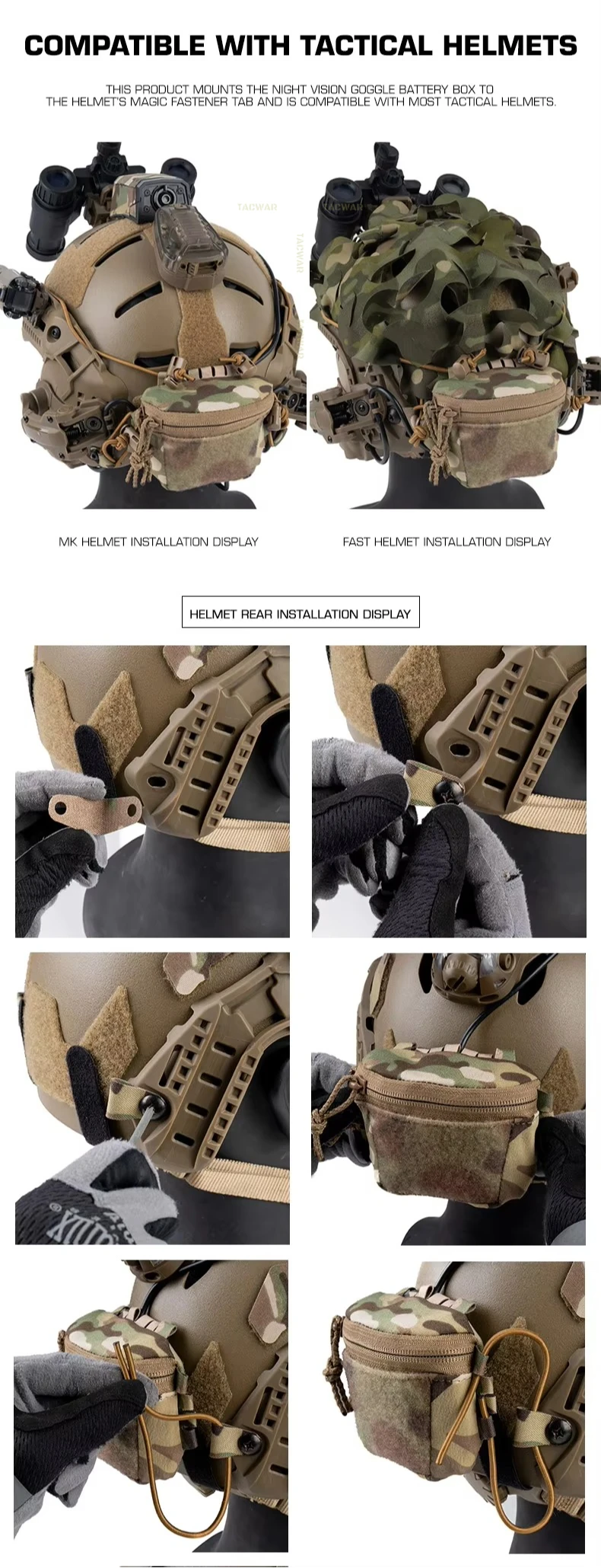 Bolsa de batería trasera para casco táctico Universal, paquete de almacenamiento de contrapeso NVG para cascos rápidos MK1 PJ Airsoft, nailon duradero