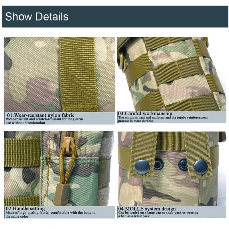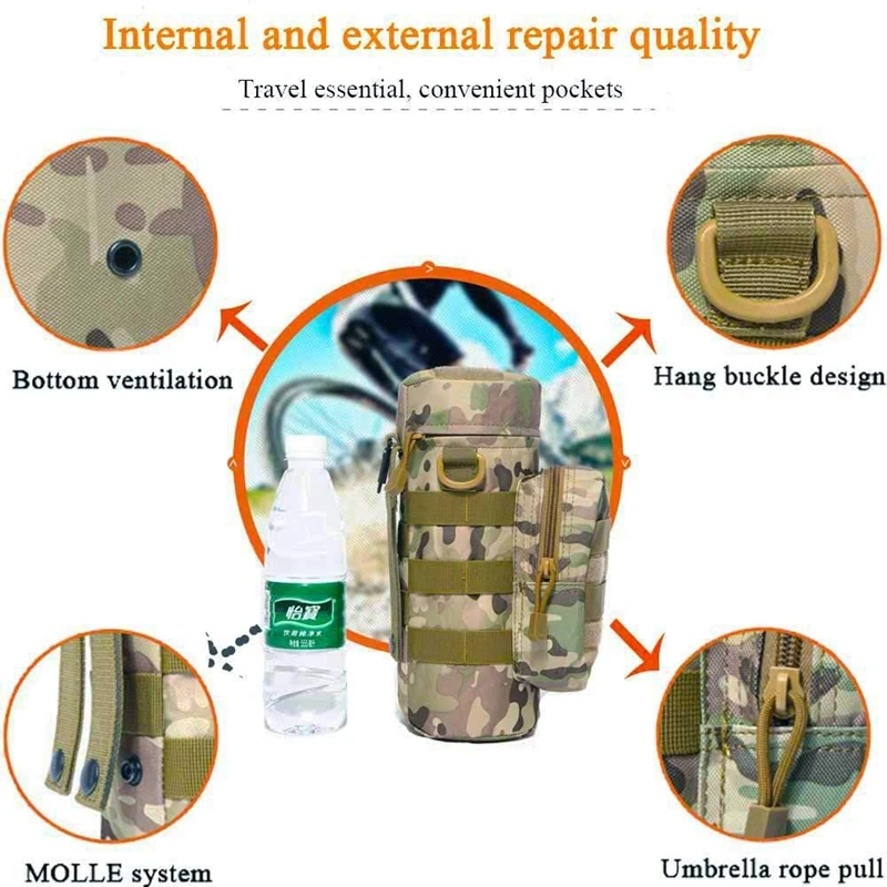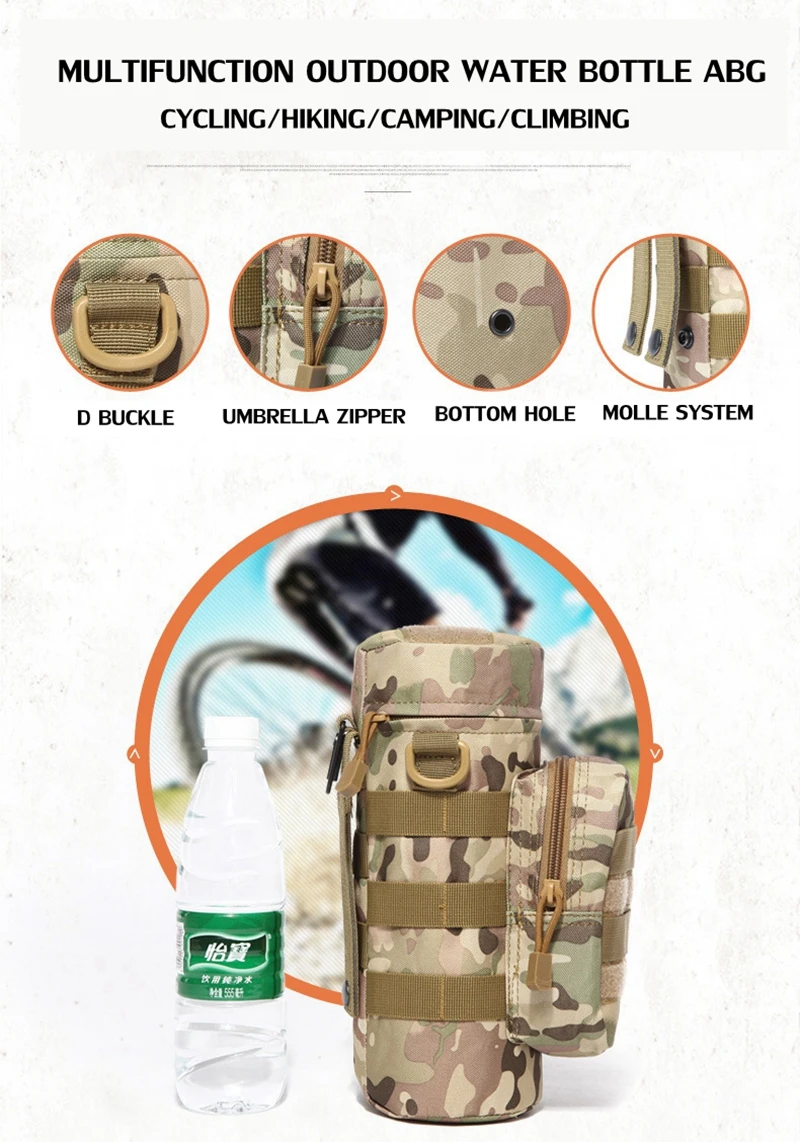 El gancho de metal de la Bolsa de la botella de agua se puede combinar con otros artículos como cinturones, bolsas para exteriores, etc.