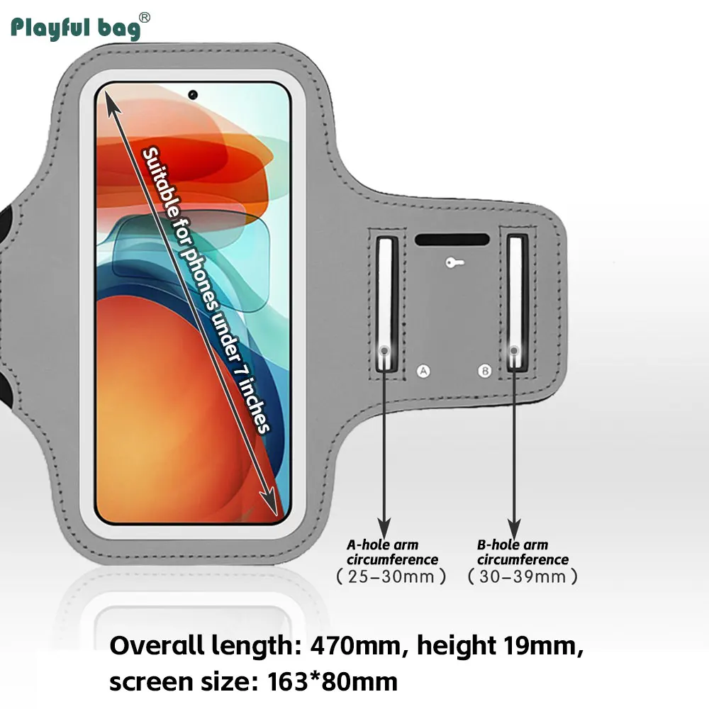 Nombre: bolsa de brazo deportiva para teléfono móvil de 7 pulgadasTela: tela de buceo de Lycra + cuero PU + PVCTamaño: 49*19cmTamaño de pantalla: 16,5x8 cm (común para teléfonos móviles dentro de 7 pulgadas)