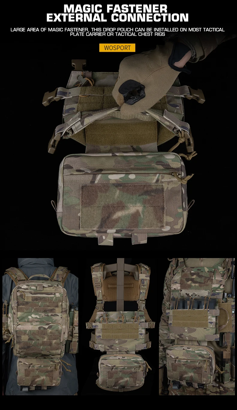 ESPACIO DE ALMACENAMIENTO: este bolsillo de almacenamiento permite a los usuarios almacenar varios artículos, el vel_cro en el interior se puede instalar con una placa de almacenamiento de vel_cro (debe comprarlo por separado).