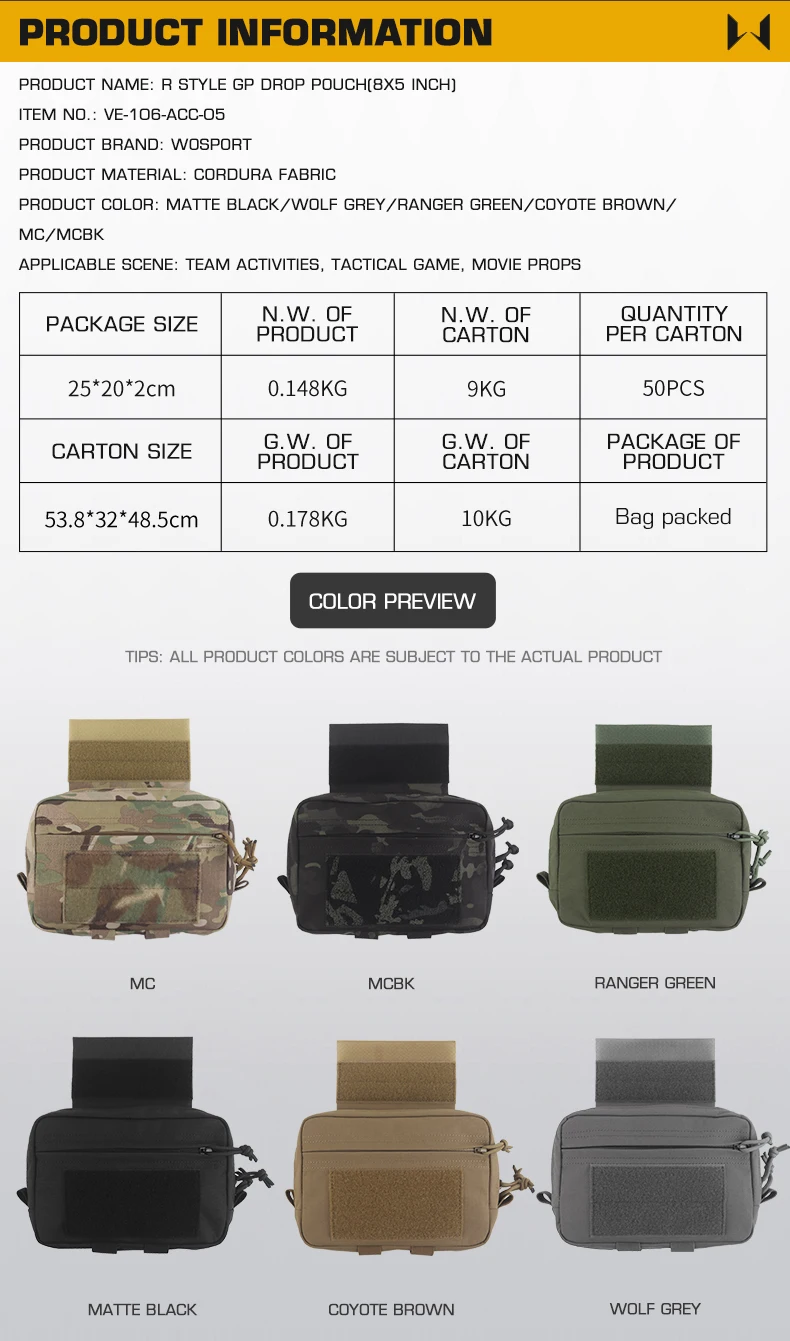 Bolsa de caída GP serie R de 8x5 pulgadas con cinta mágica apta para cinturón de ancho inferior a 5,5 CM, accesorios de caza
