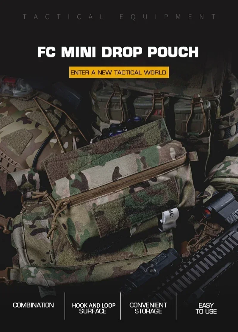 1Bolsa caída compatible con la mayoría de los aparejos de pecho y soportes de placas que tienen un accesorio de gancho y bucle en la parte delantera.Por ejemplo: FC, JPC, CPC, LBT, D3CR, MK3, MK4, etc.