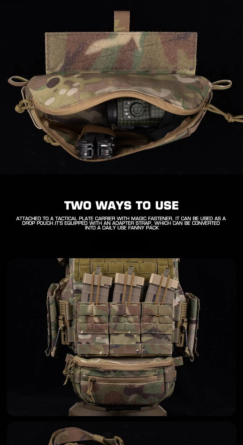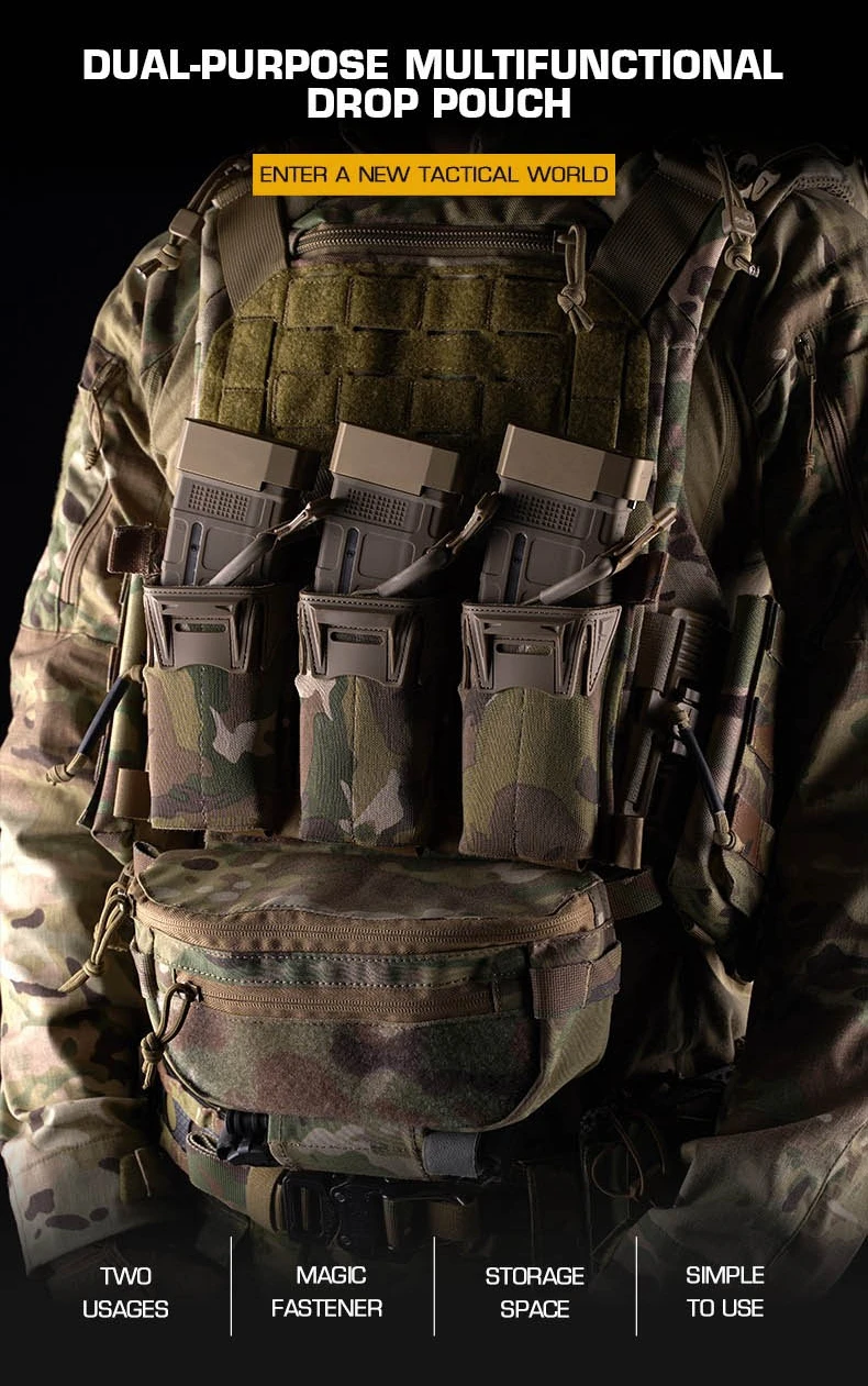Bolsa de caída táctica, Kit de transporte Abdominal, riñonera con Panel de gancho y bucle para chaleco táctico, aparejo de pecho, bolsa para exteriores