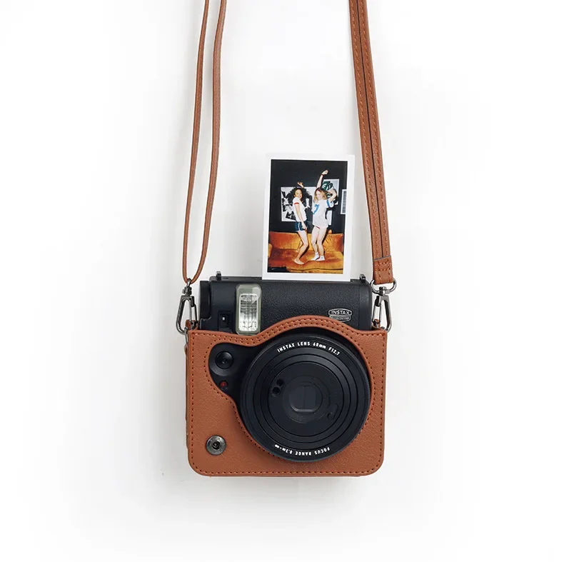 Para Instax mini 99 funda para cámara funda de cuero PU con correa para el hombro